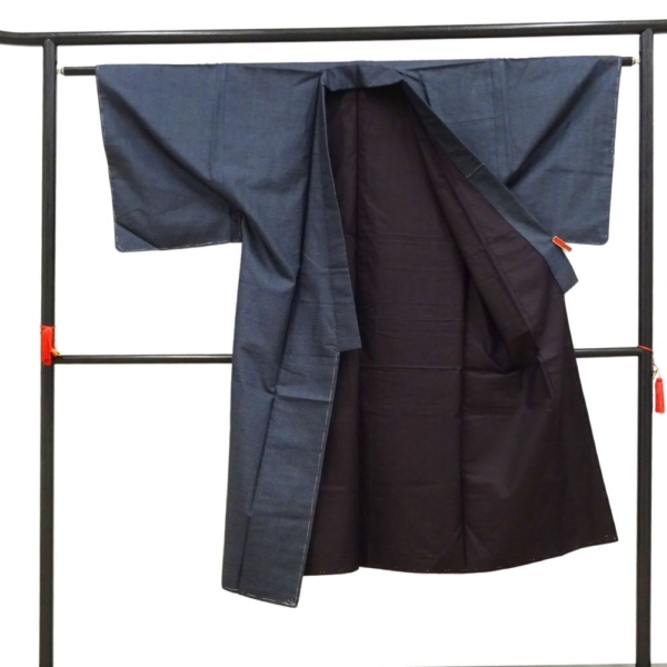 表地は、どんな場面でも間違いのない落ち着いた紺色の紬。