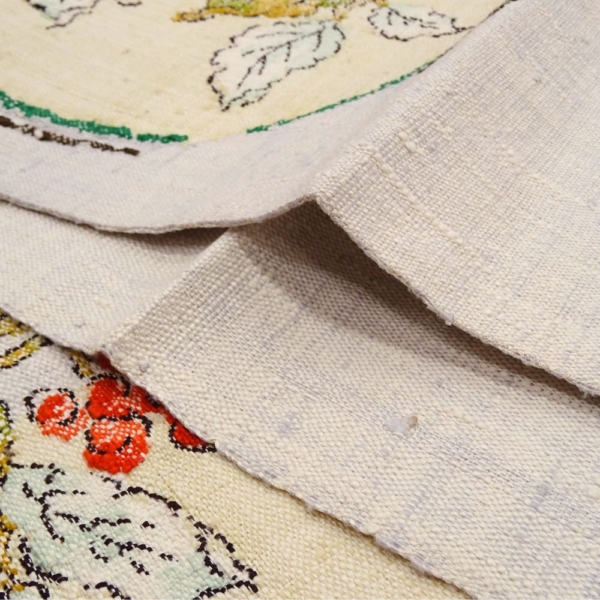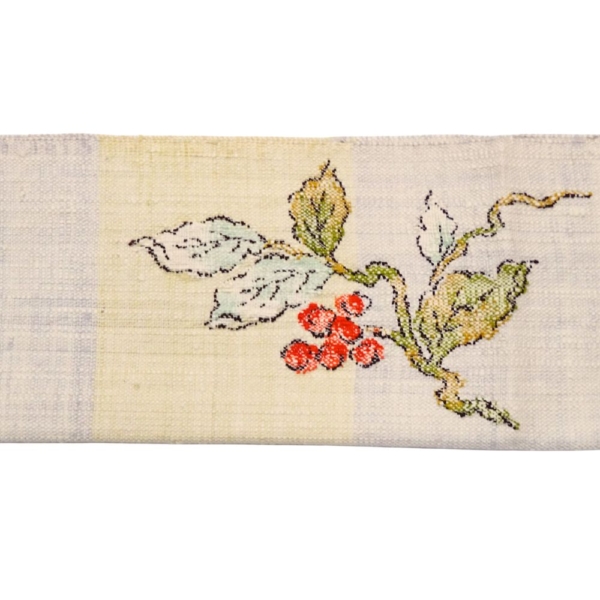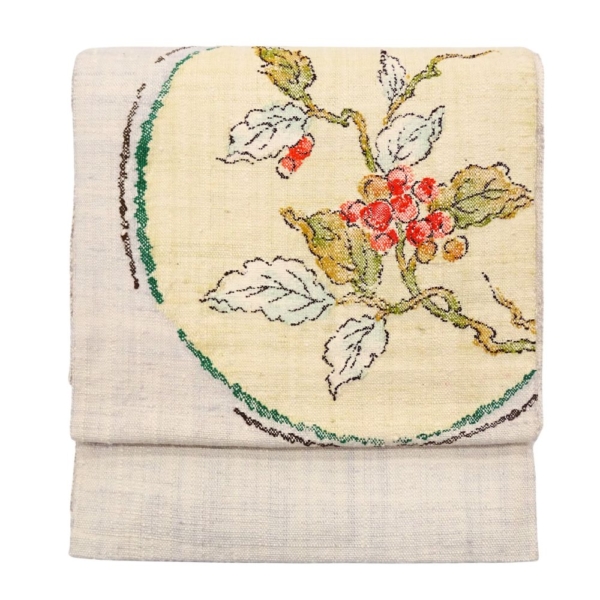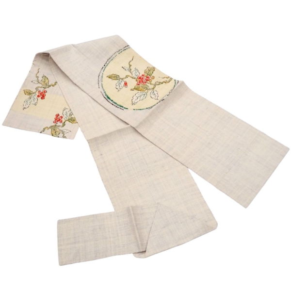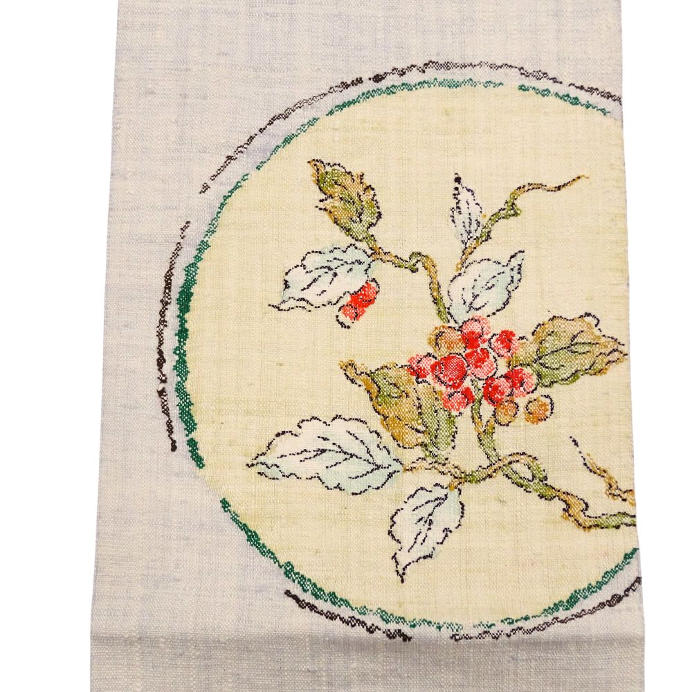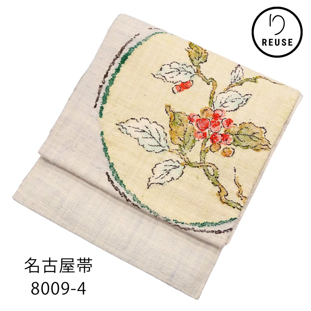 名古屋帯 正絹 リユース 紬地 生成り 南天 染め帯 8009-4 カジュアル お洒落着 セミフォーマル