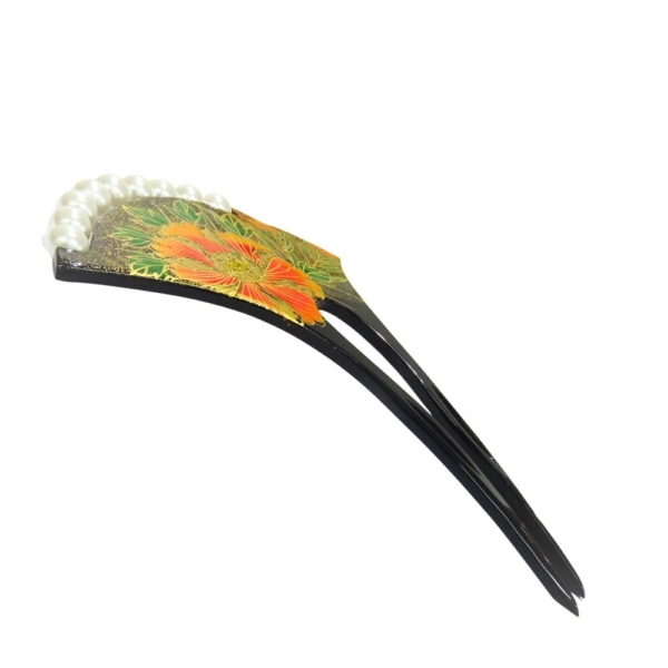 黒のバチ型に、大輪の牡丹が美しく描かれた優美なかんざしです。