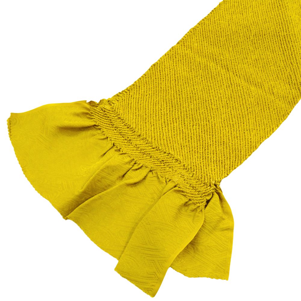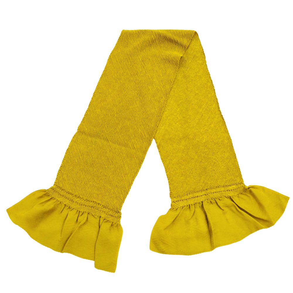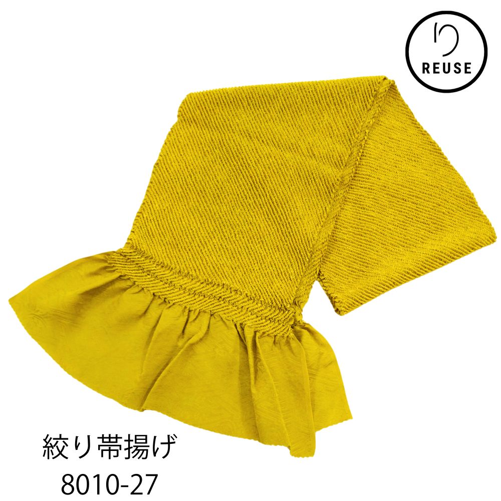 振袖用帯揚げ 未使用品 リユース 総絞り マスタードイエロー 8010-27 成人式 結婚式 和装小物