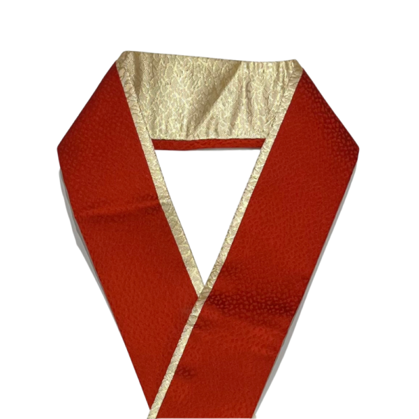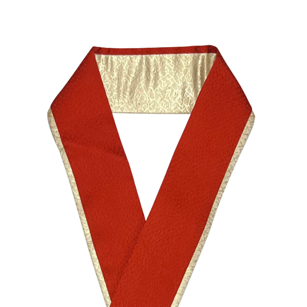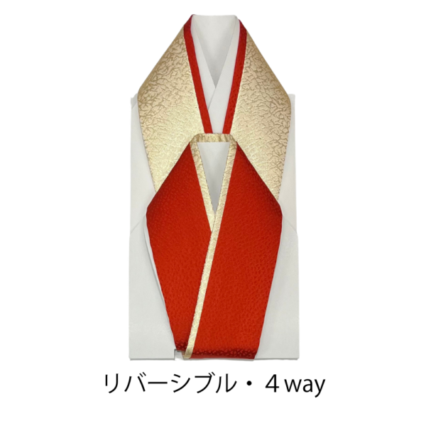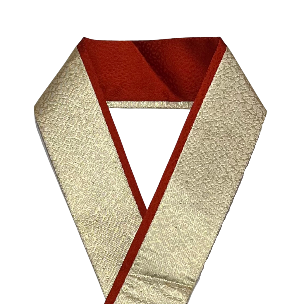 ゴールドと落ち着いた赤の両面リバーシブル仕様の重ね衿です。