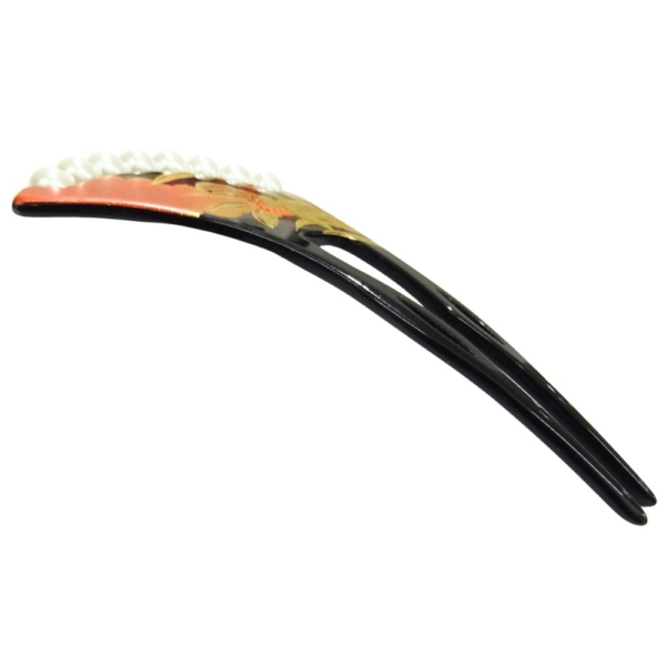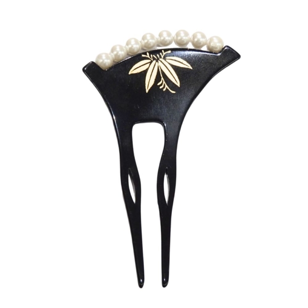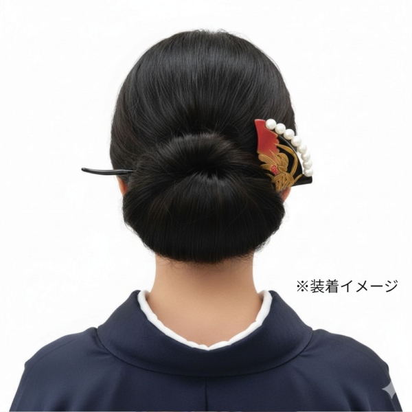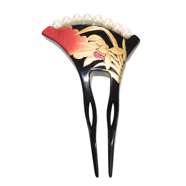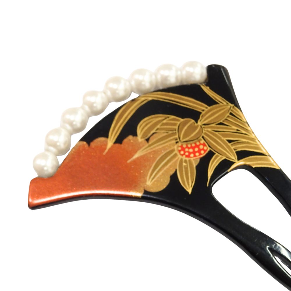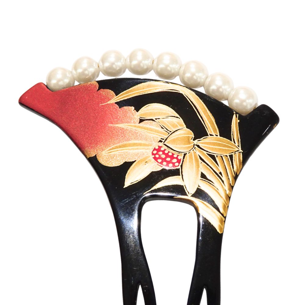 かんざし 未使用品 リユース バチ型 パール装飾 金彩 赤×黒 野苺 8010-9 (8050-01009) 髪飾り 和装小物 着物 訪問着 留袖