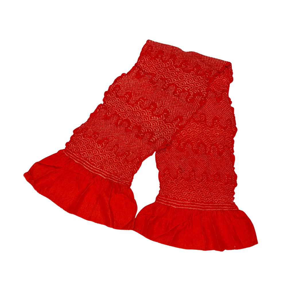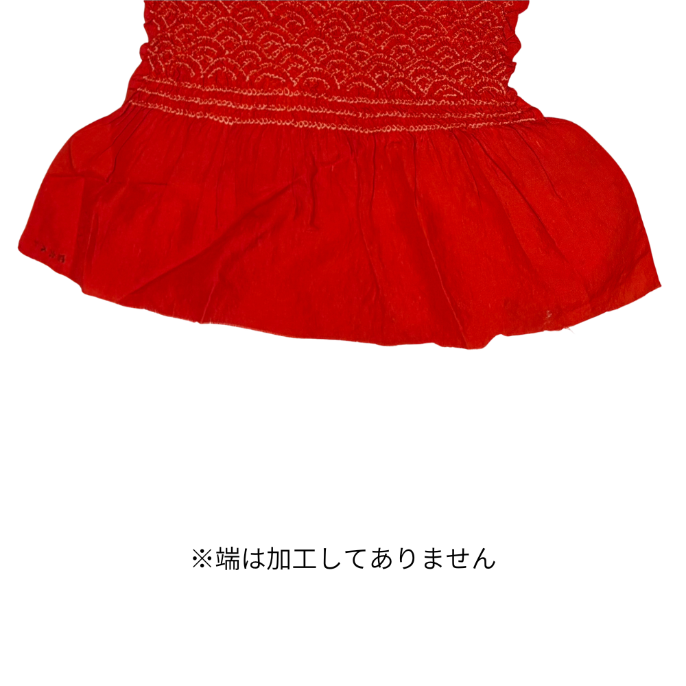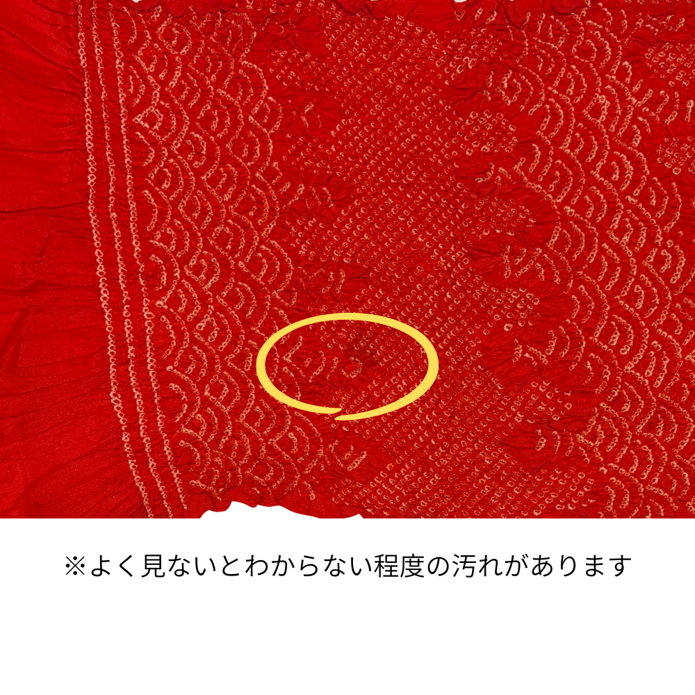 帯揚げ 総絞り 赤 青海波 子供用 女の子 七五三 リユース 中古 8016-4 ★