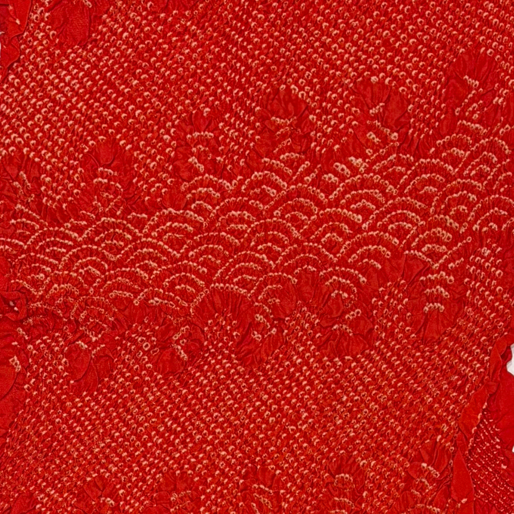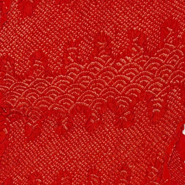 七五三や晴れの日のお着物にぴったりの、鮮やかな赤色の総絞り帯揚げです。
