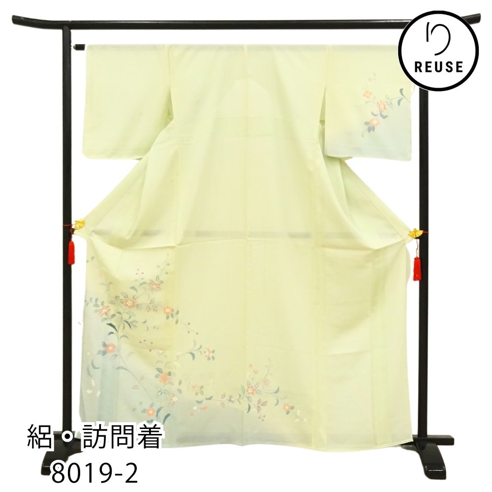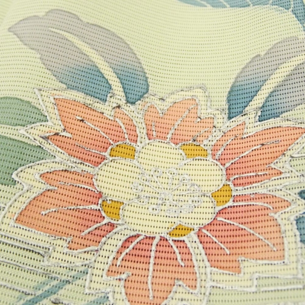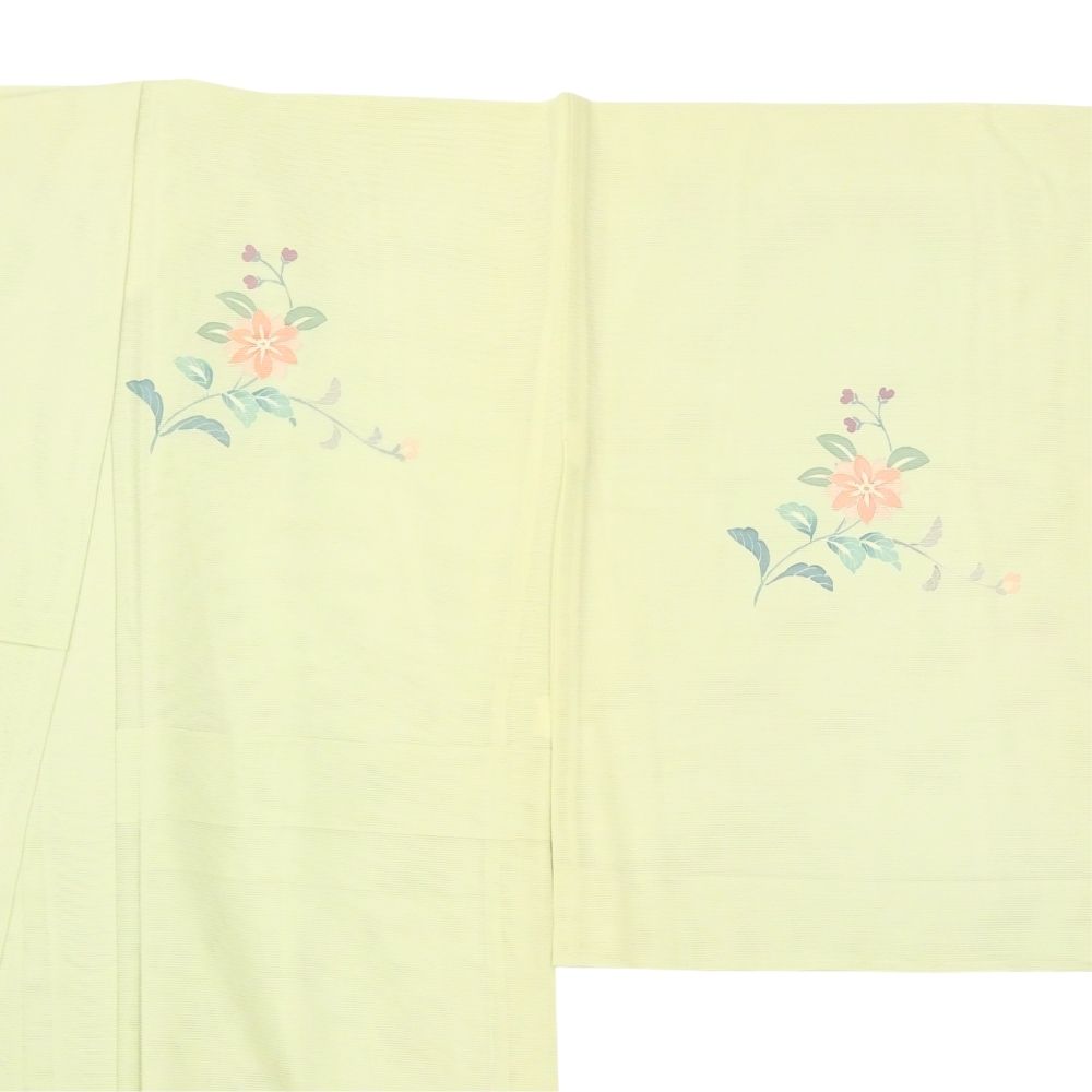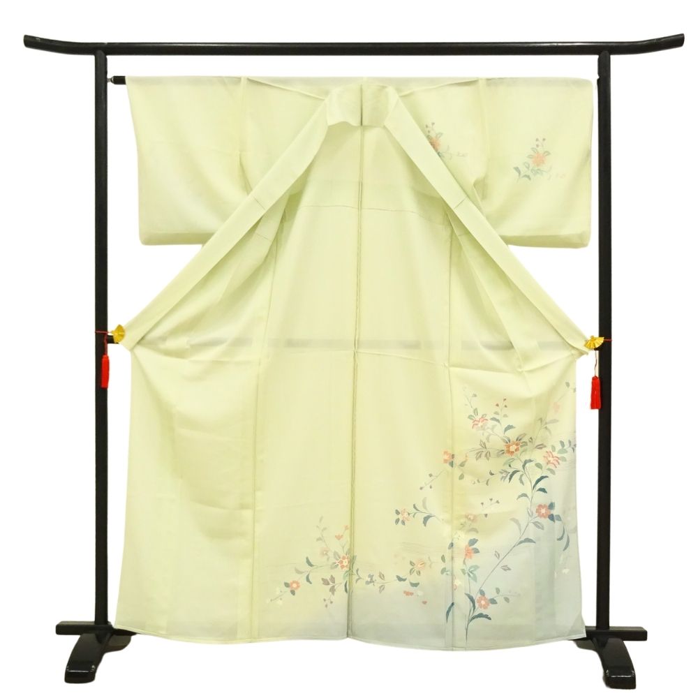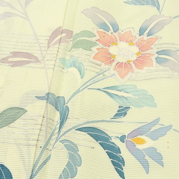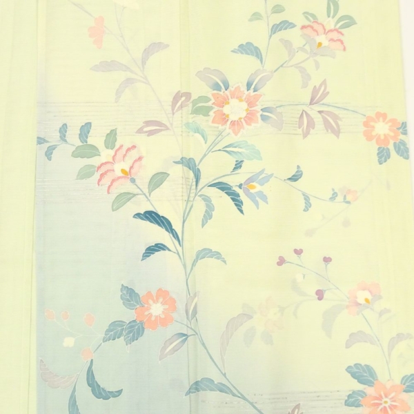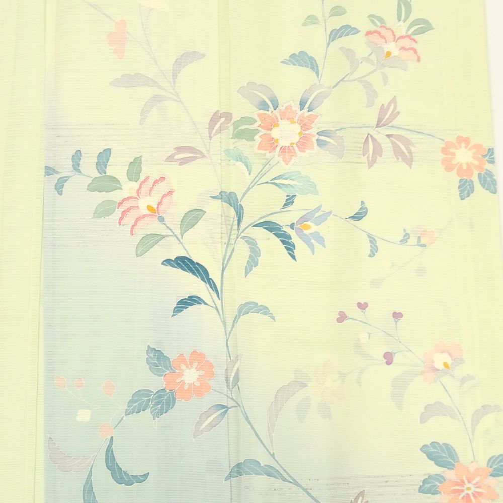 絽 訪問着 正絹 リユース 中古 淡黄緑×水色 ぼかし 花草文様 8019-2 (8050-01019) 夏のフォーマル