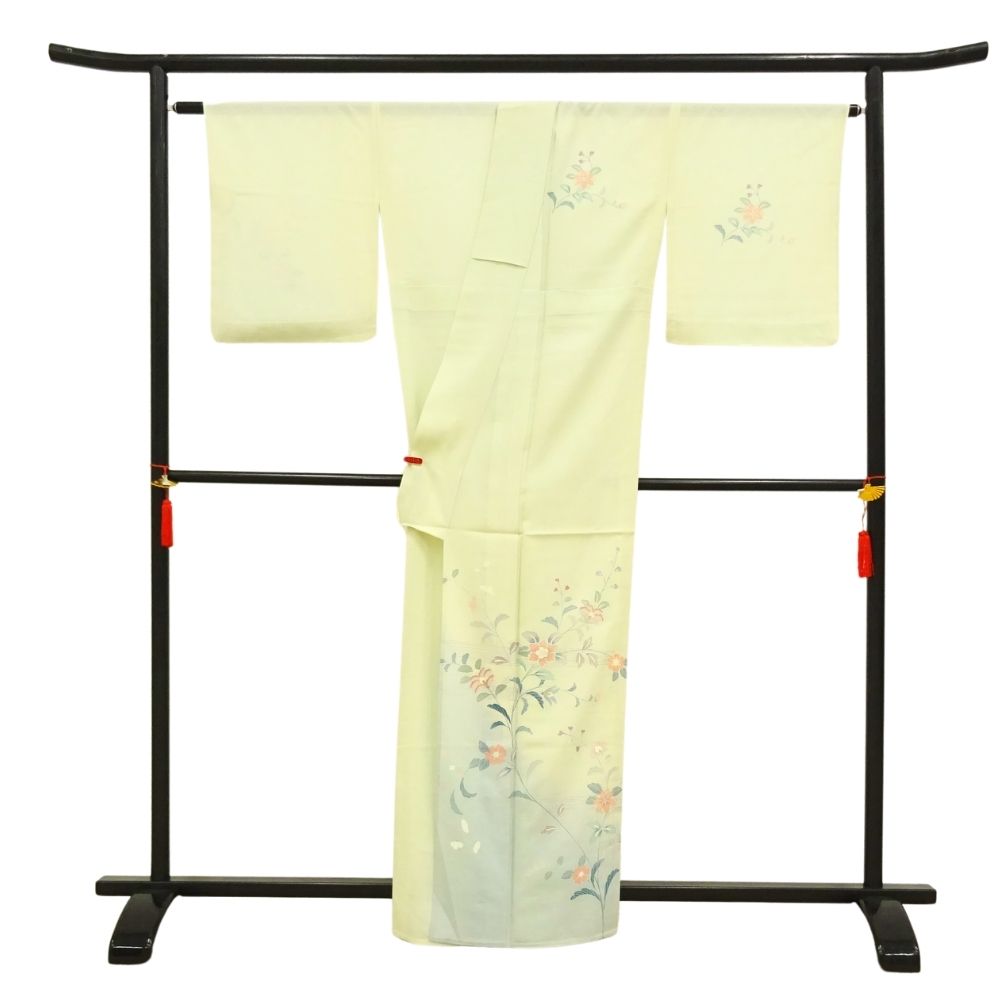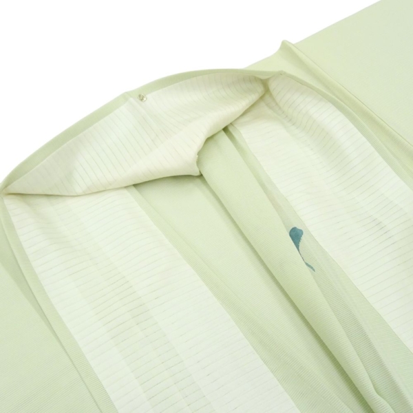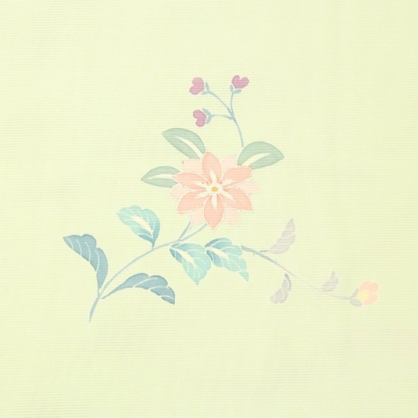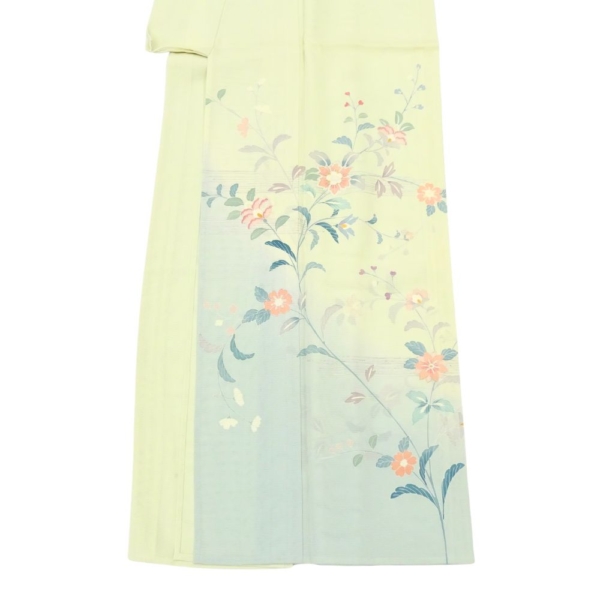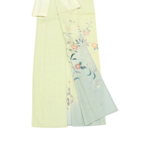 優しく明るい淡黄緑を基調とし、裾にかけて爽やかな水色へと移り変わるぼかし染めが施されています。