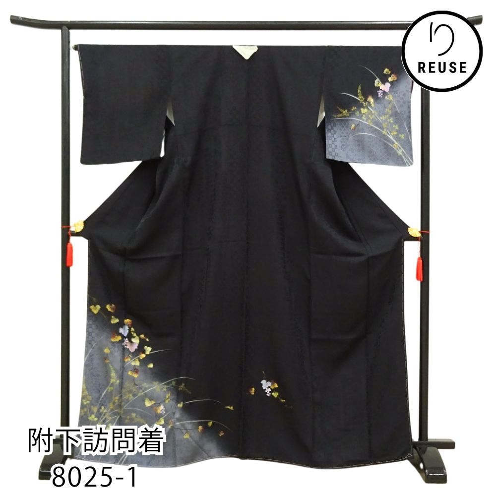 附下訪問着 正絹 リユース 中古 袷 黒地 葡萄 蔦文様 8025-1 (8050-01023) フォーマル 結婚式 披露宴 エレガント 礼装