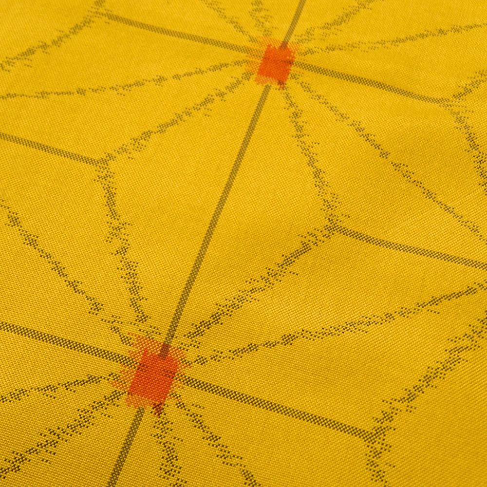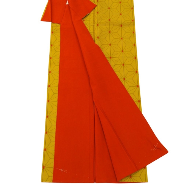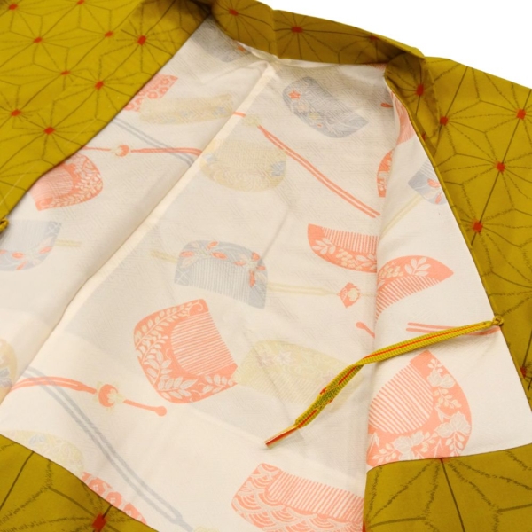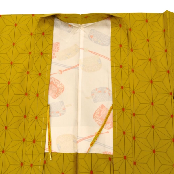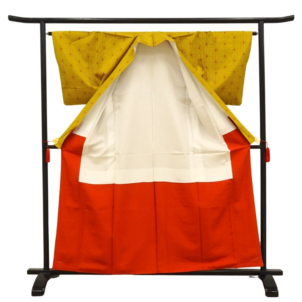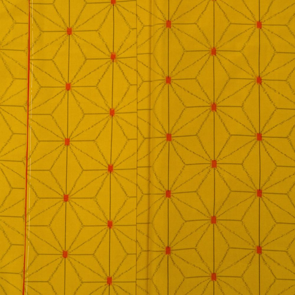 深みのある芥子色に、細やかな麻の葉模様が施された、粋でモダンな一着。