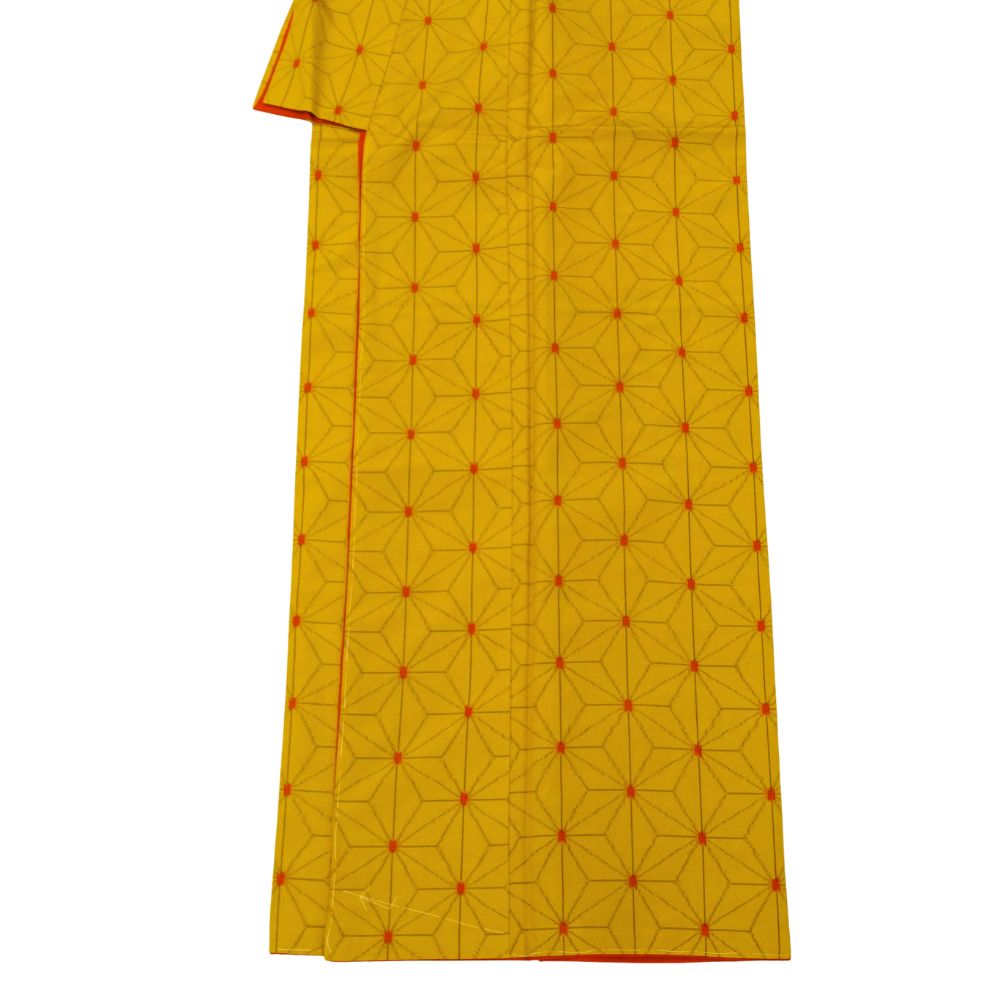 黄八丈アンサンブル 正絹 リユース 中古 袷 麻の葉文様 8028-12 カジュアル 街歩き 仕立て上がり