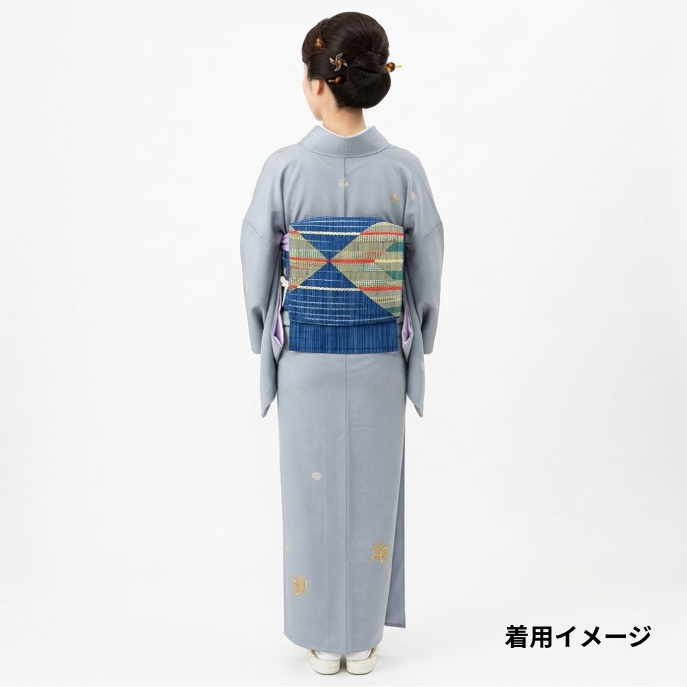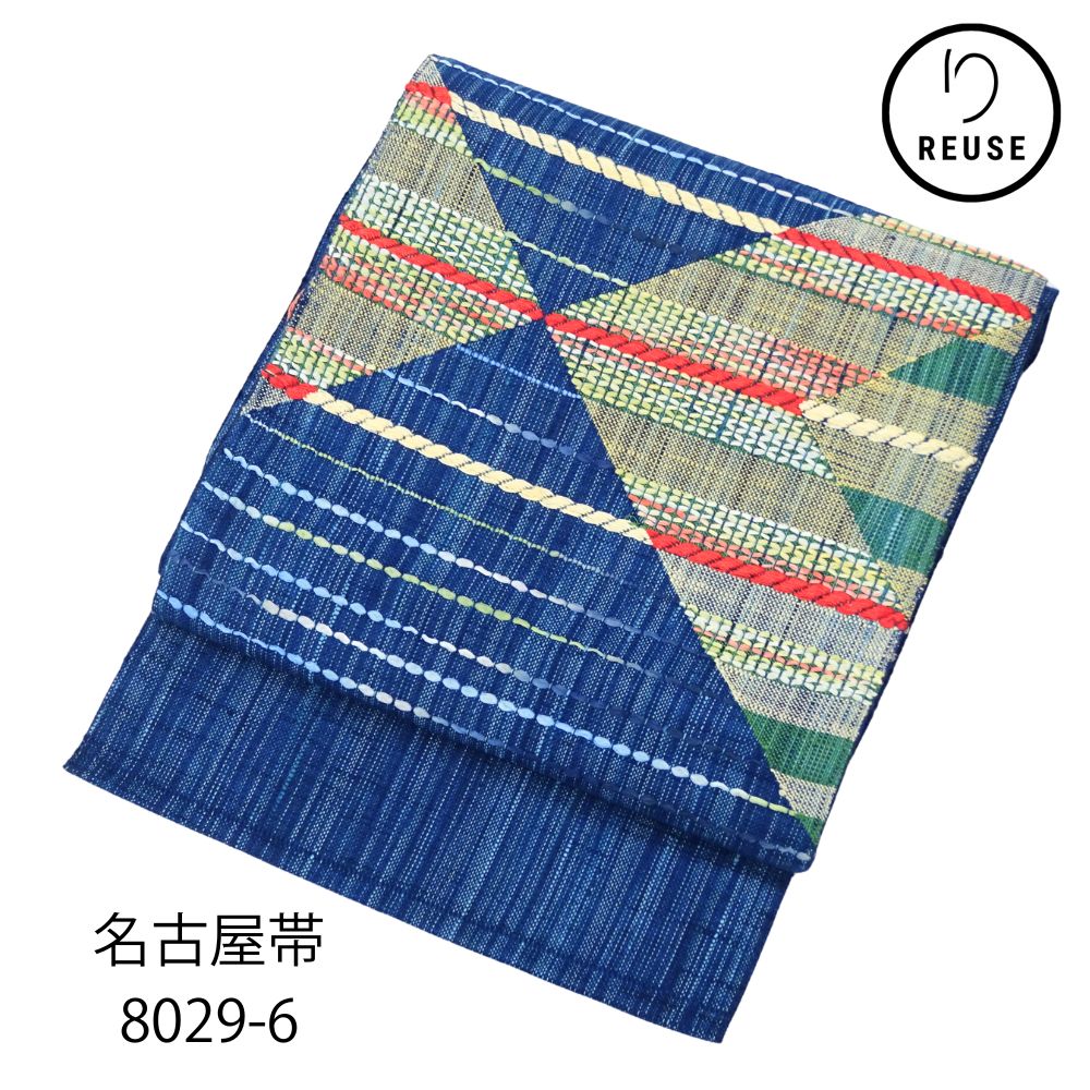 名古屋帯 正絹 リユース 中古 青 幾何学的デザイン 菱文様 8029-6 洒落帯 観劇 小紋 紬 カジュアル