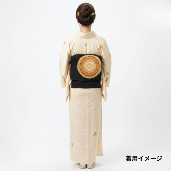 クリーム色やベージュ系の着物に合わせると、帯の黒が全体を引き締め、上品で知的なコーディネートになります。