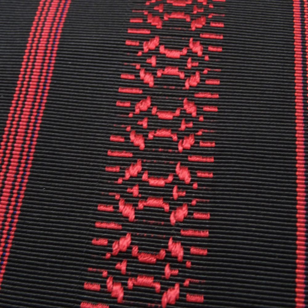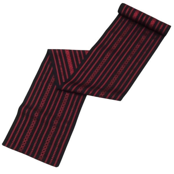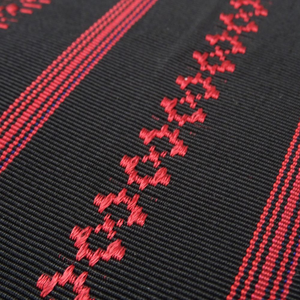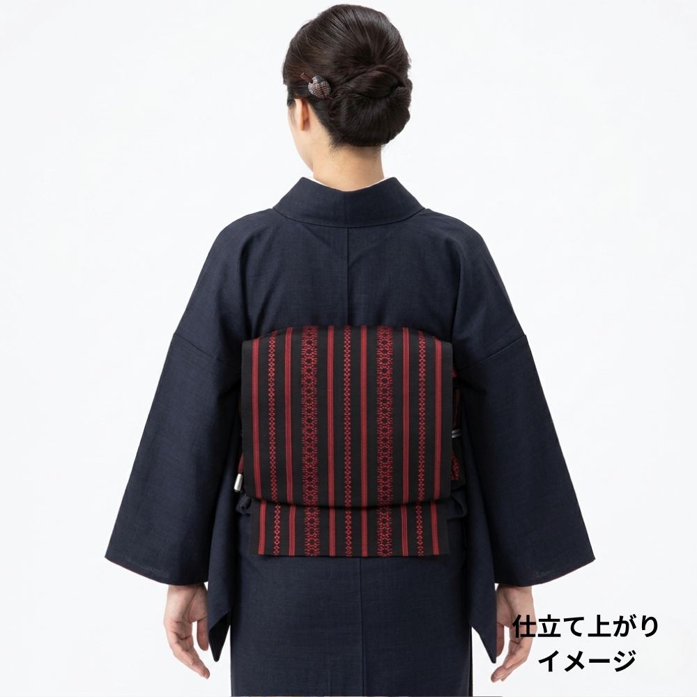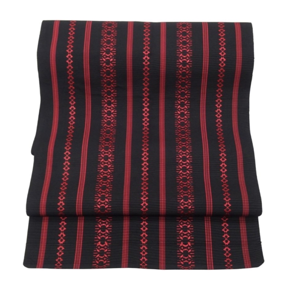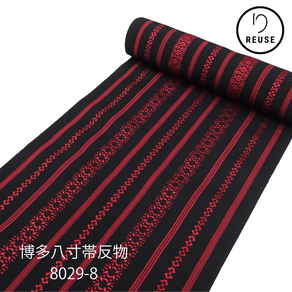 博多八寸名古屋帯 反物 未仕立て 正絹 リユース 黒×赤 献上柄 8029-8 粋なモダンデザイン 普段着からお稽古まで