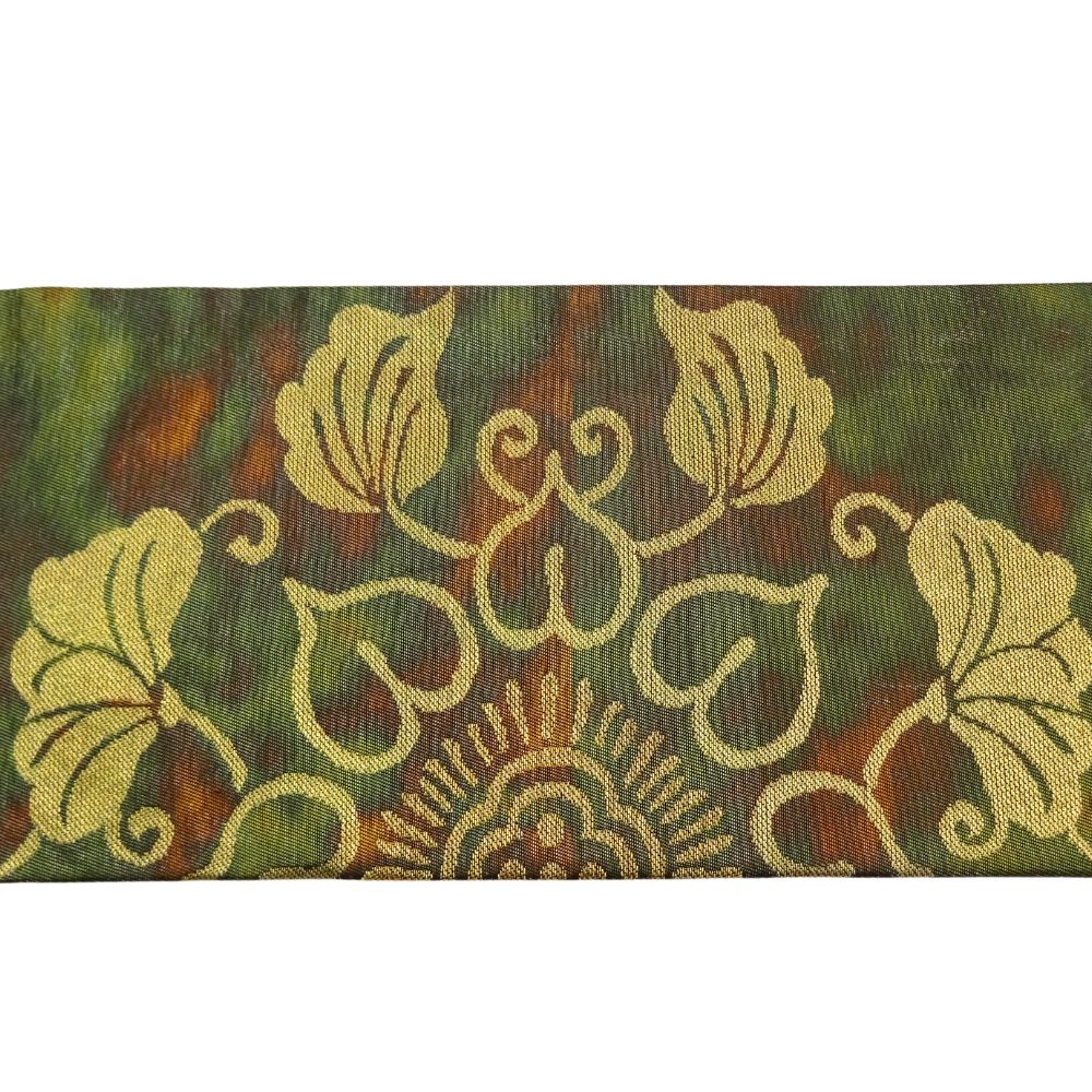名古屋帯 正絹 リユース 中古 深緑 華文様 更紗調 金糸織り出し 8033-4 カジュアル お茶会 小紋 紬 洒落帯