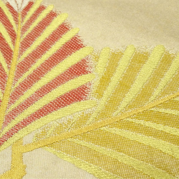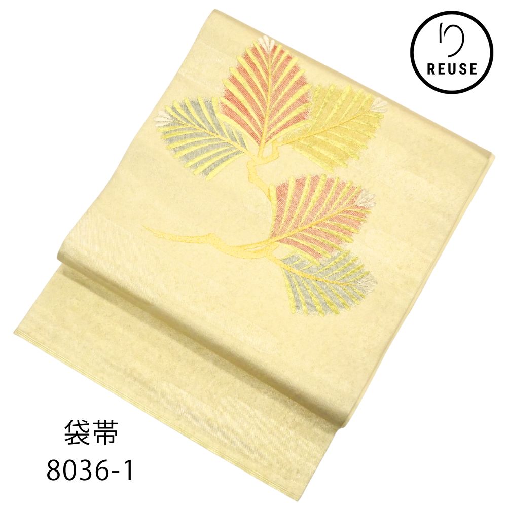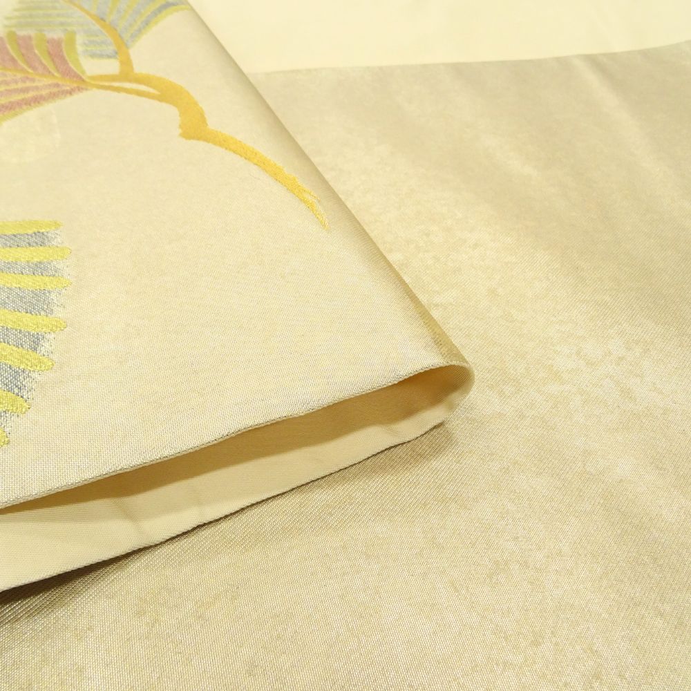 袋帯 正絹 リユース 中古 西陣織 金糸 霞に松葉模様 クリーム色 8036-1 (8050-01049) フォーマル 礼装用 結婚式 パーティー 入学式 卒業式