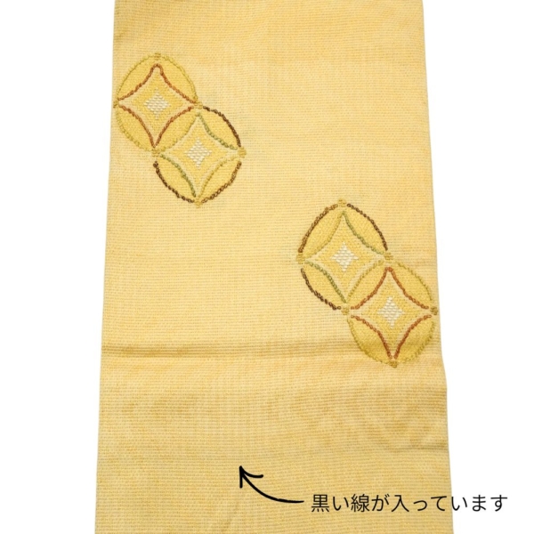 商品の状態:【B】お太鼓柄の少し下と前に来る柄の横に黒い線が入っています。