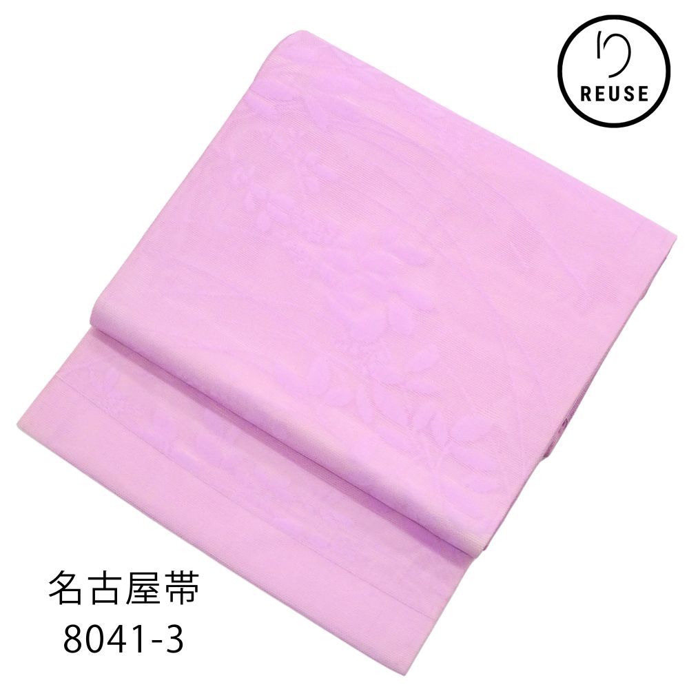 羅・名古屋帯 正絹 リユース 中古 ピンク 藤 萩 織り文様 8041-3 九寸名古屋帯 洒落帯 上品 セミフォーマル カジュアル