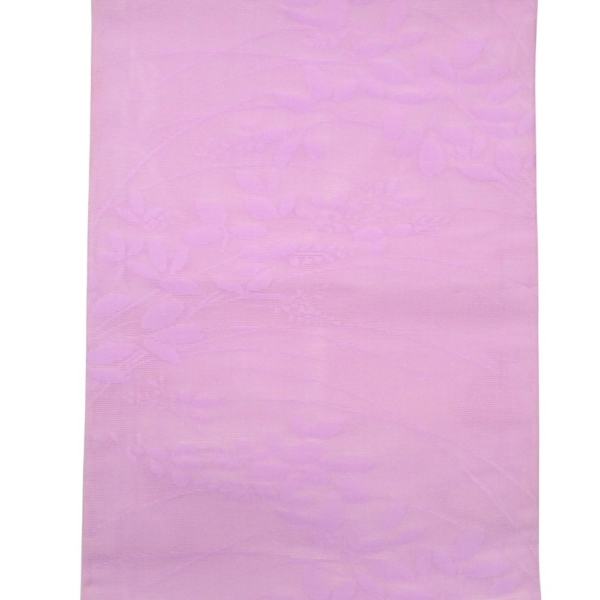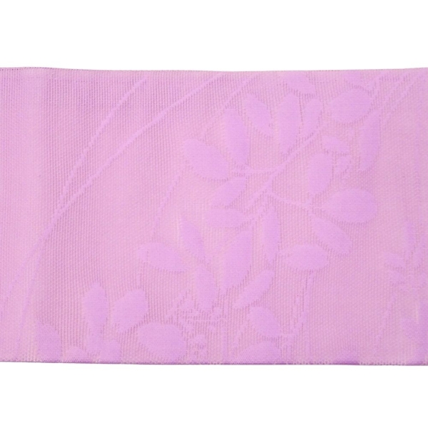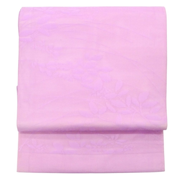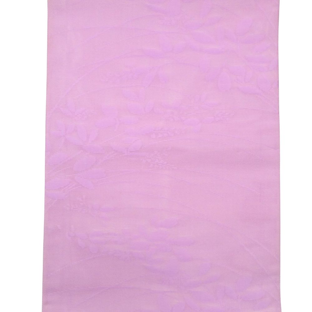 心華やぐラベンダーピンクの地に、優雅な藤や萩の文様が織り出された名古屋帯です。