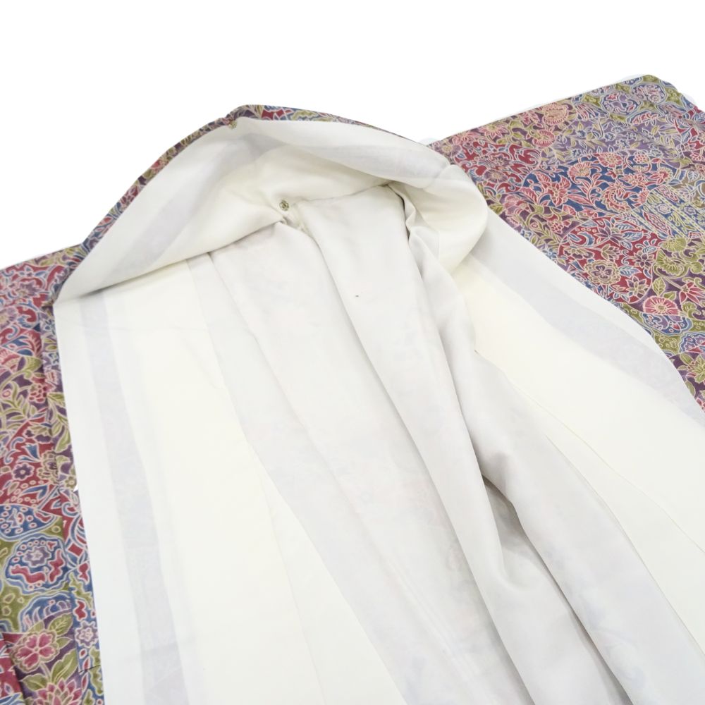 染大島 正絹 リユース 中古 袷 型染め 万華鏡更紗 抽象文様 8042-14 カジュアル お洒落着 観劇