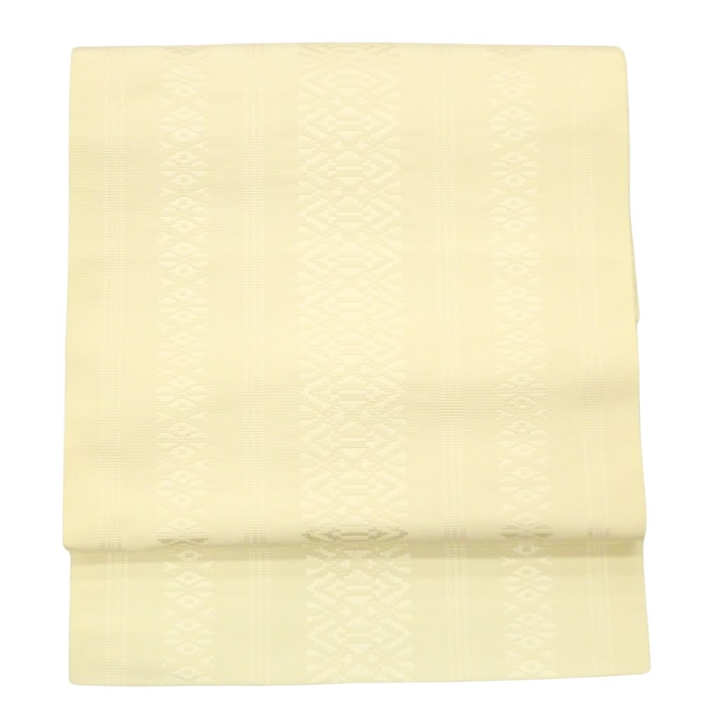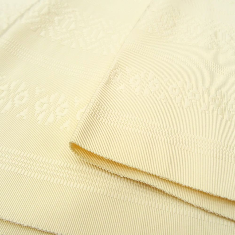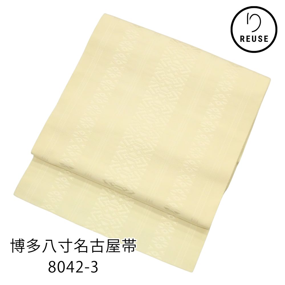 博多八寸名古屋帯 正絹 リユース 中古 献上柄 アイボリー 8042-3 全通柄 名古屋帯 お洒落着 普段使い 小紋 紬 浴衣