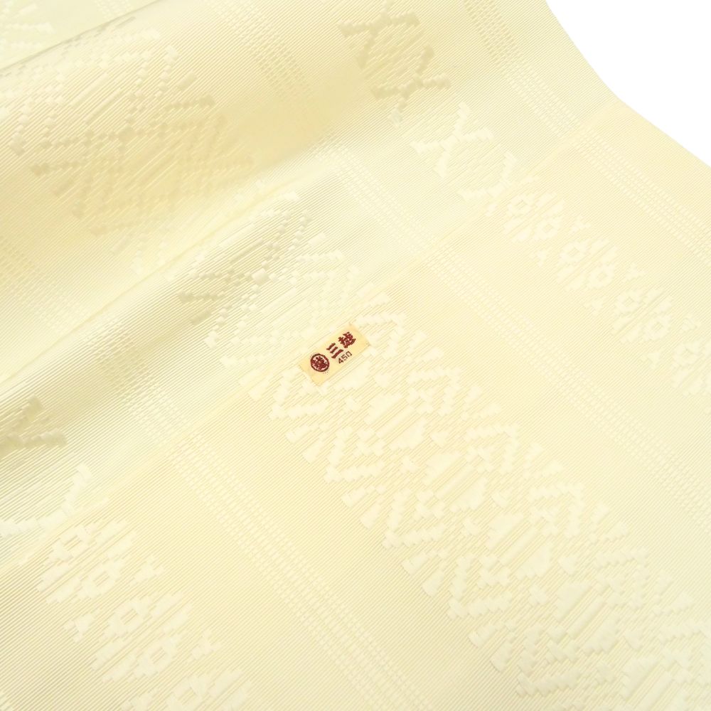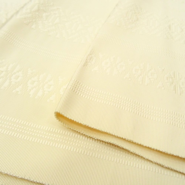 混じりけのない清楚なアイボリーに、伝統の献上柄が同系色で浮き上がる、非常に上品でモダンな仕上がりとなっています。