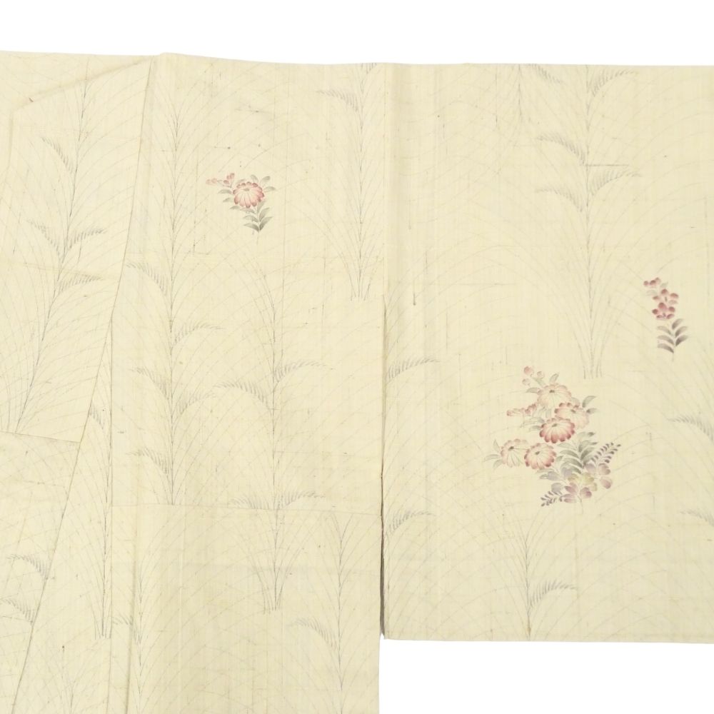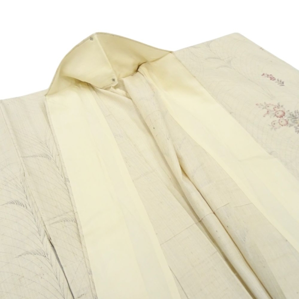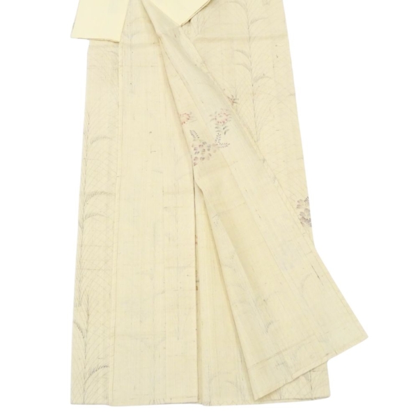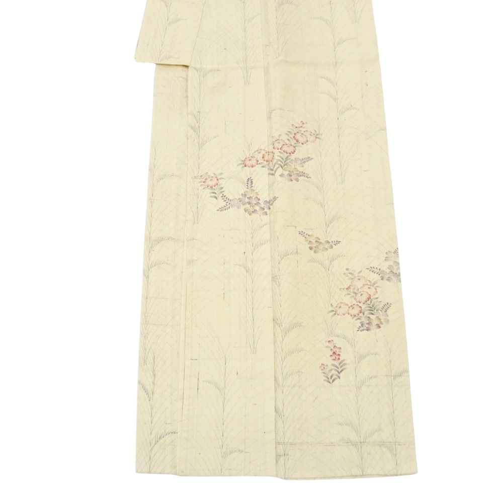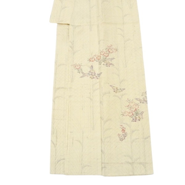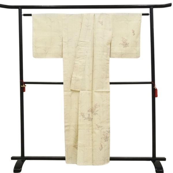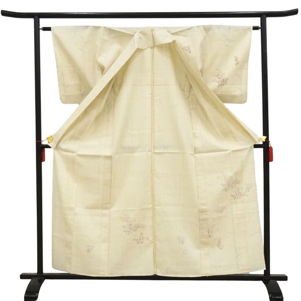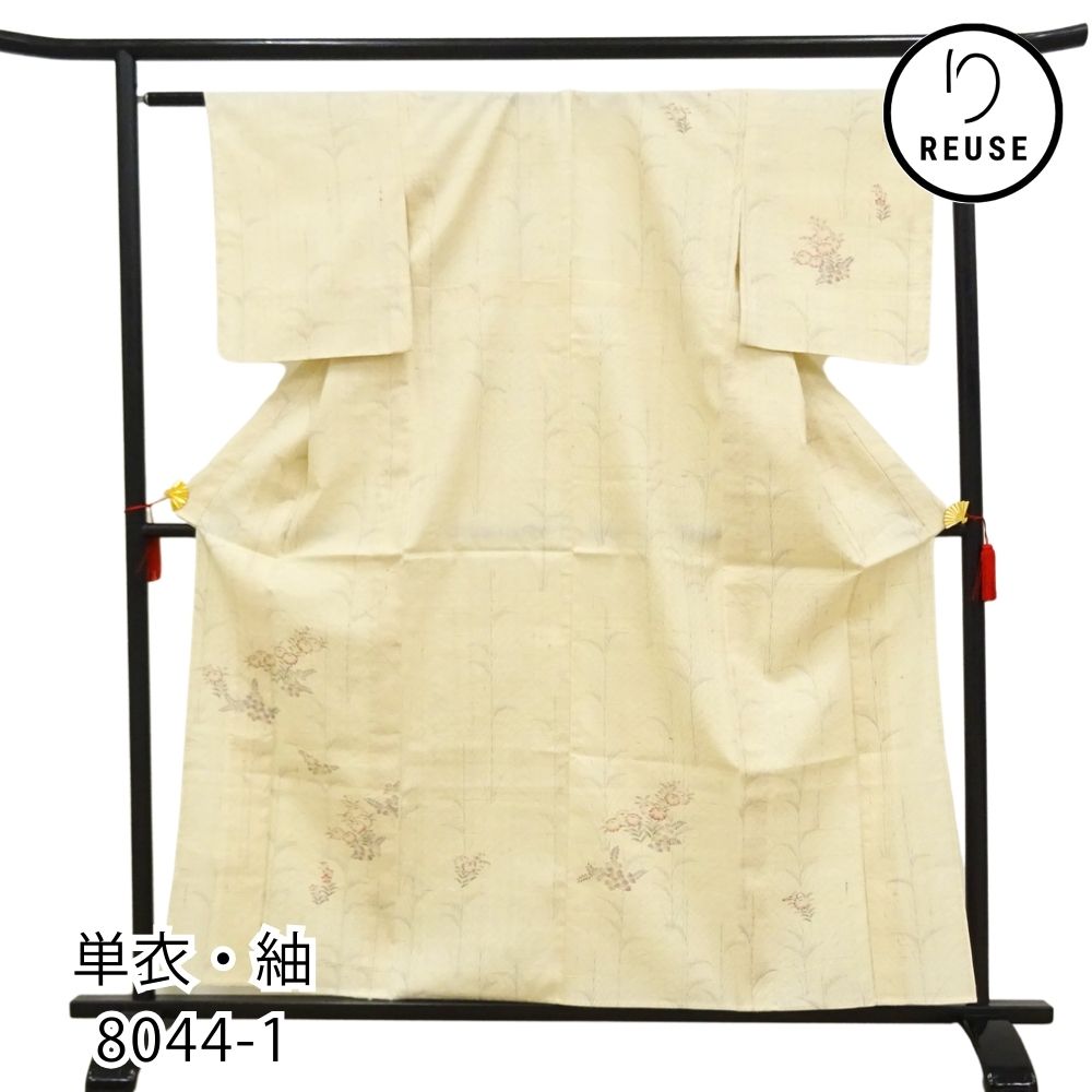 単衣・紬 正絹 リユース 中古 生成り 枝花 8044-1 観劇 お稽古 女子会 ランチ 洒落着