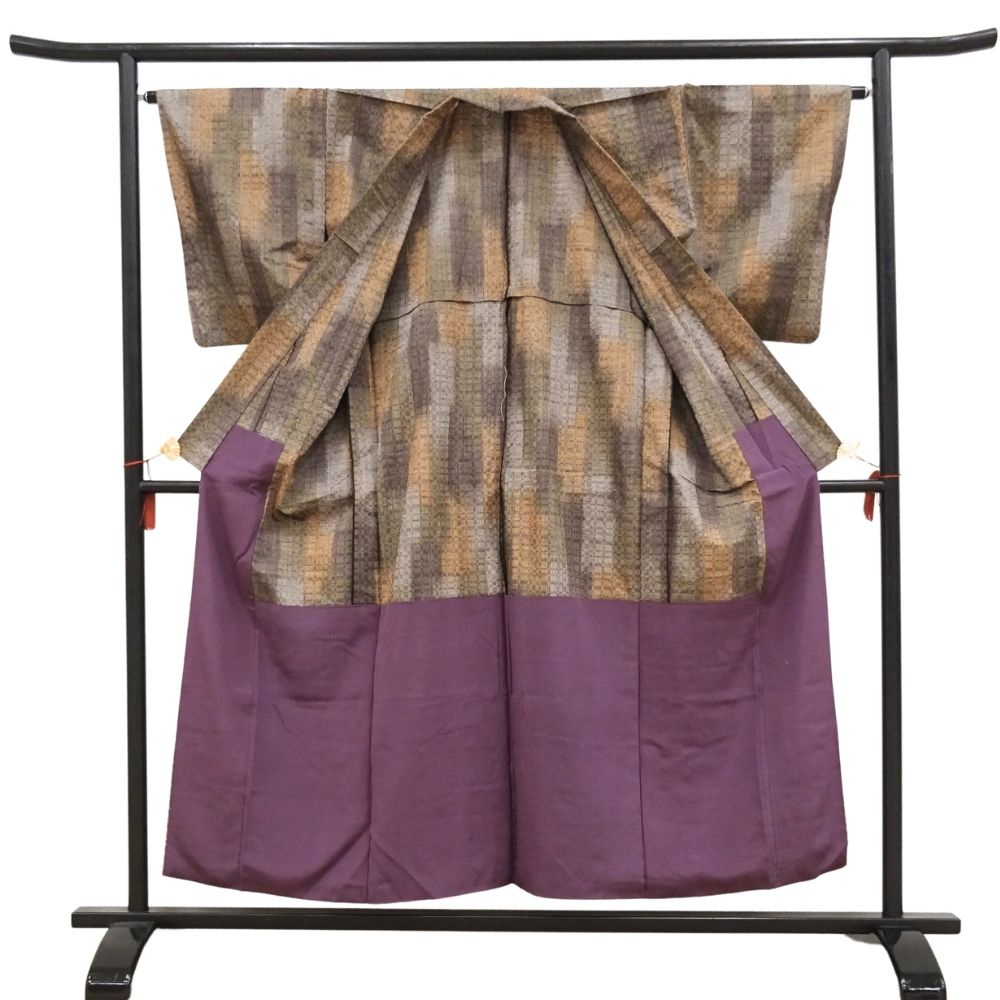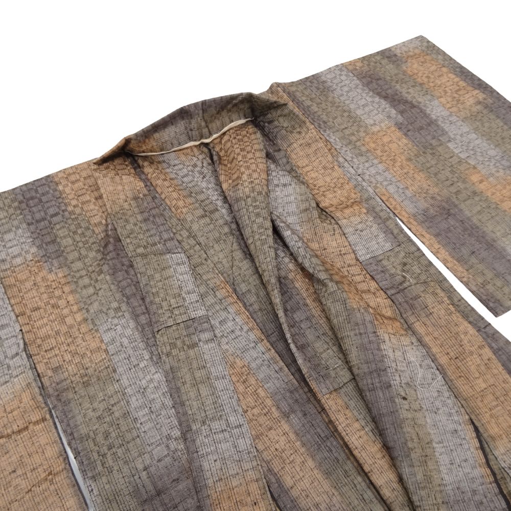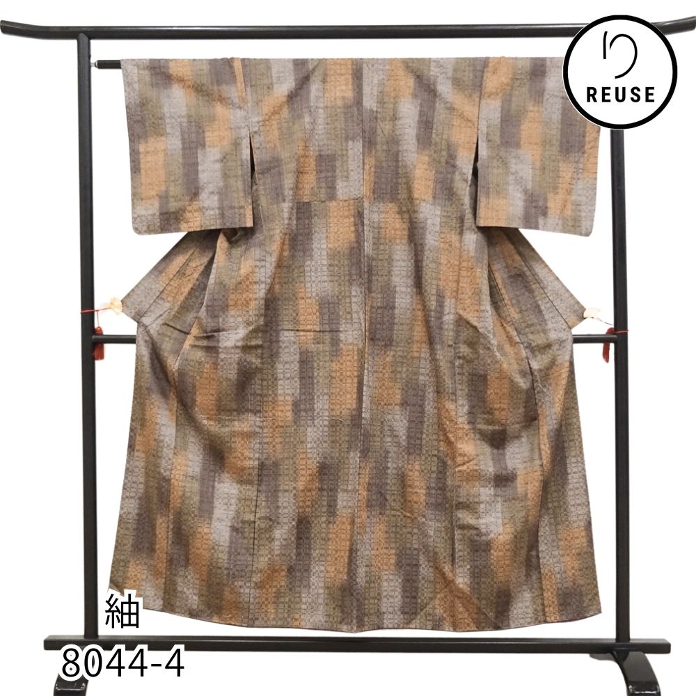 紬 正絹 リユース 中古 胴抜き仕立て 縦縞 ぼかし織り ニュアンスカラー 8044-4 カジュアル着物 お洒落着 普段使い