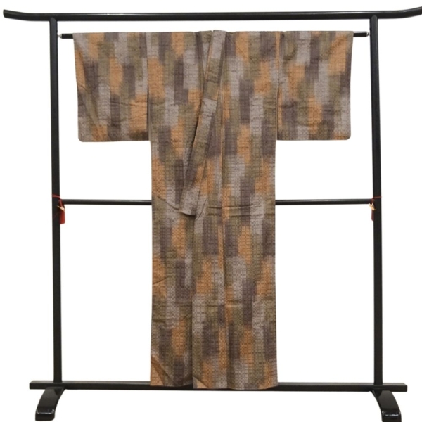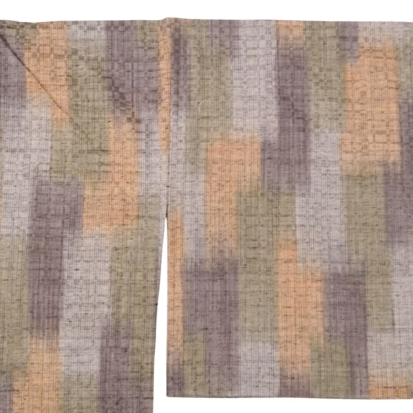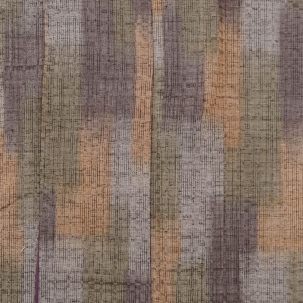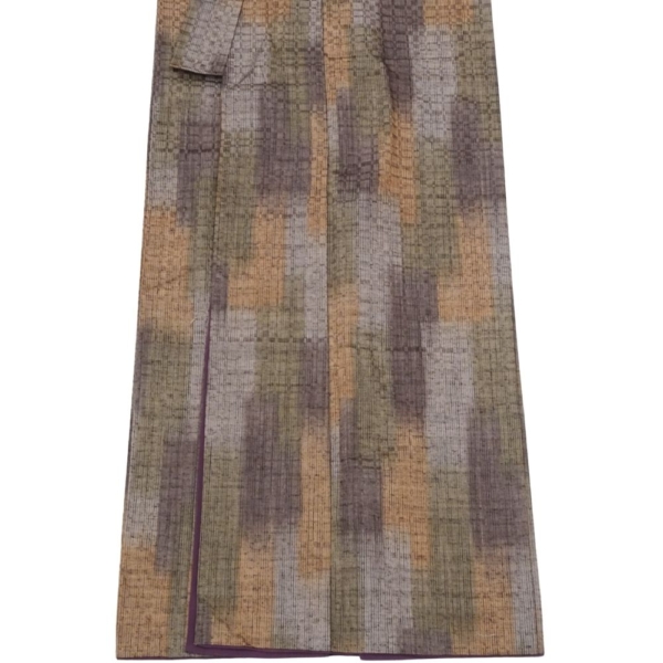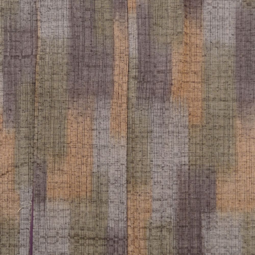 落ち着いたベージュ、オリーブなど、絶妙なニュアンスカラーを縦ぼかしで表現した、大変お洒落な紬です。