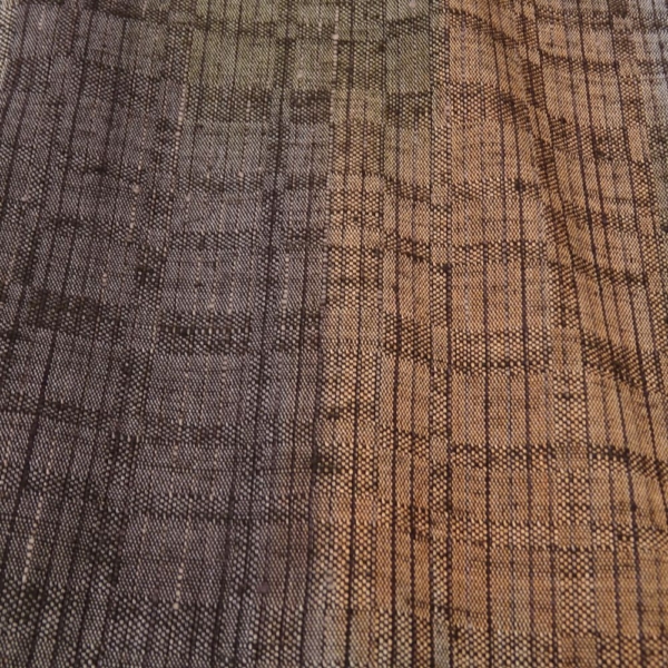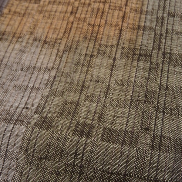一見シンプルに見えますが、近づくと細やかな織りの節と、複雑に重なり合う色の変化が目を楽しませてくれます。