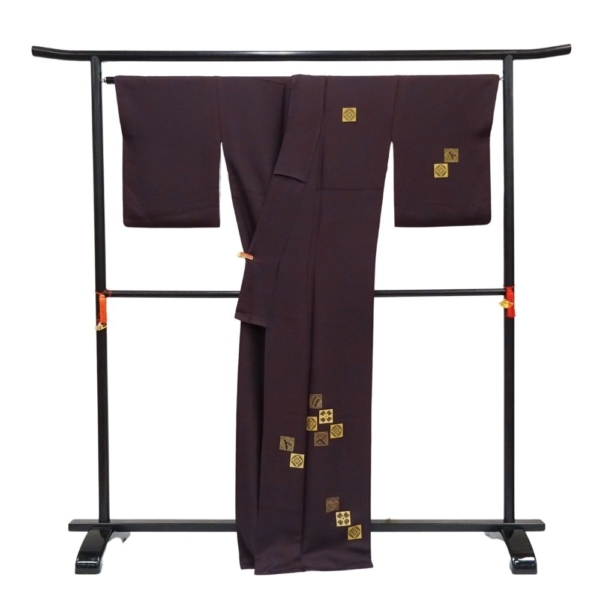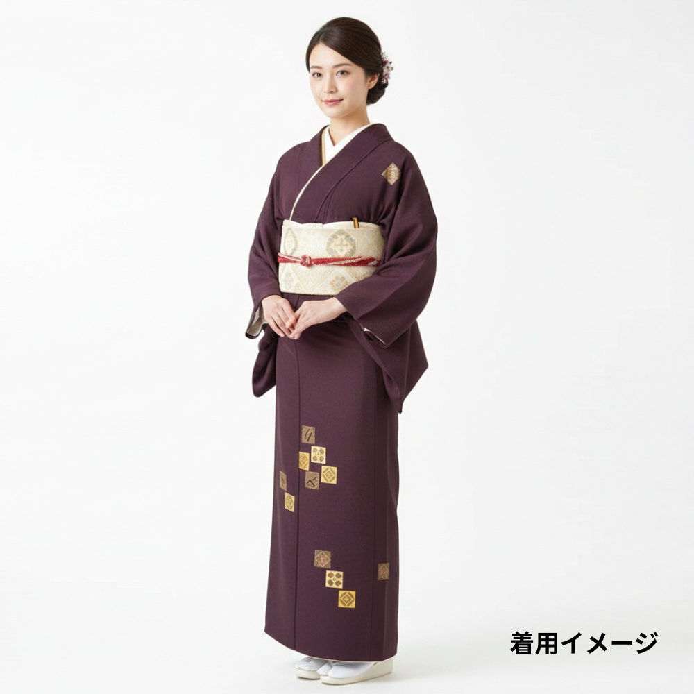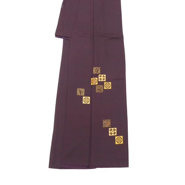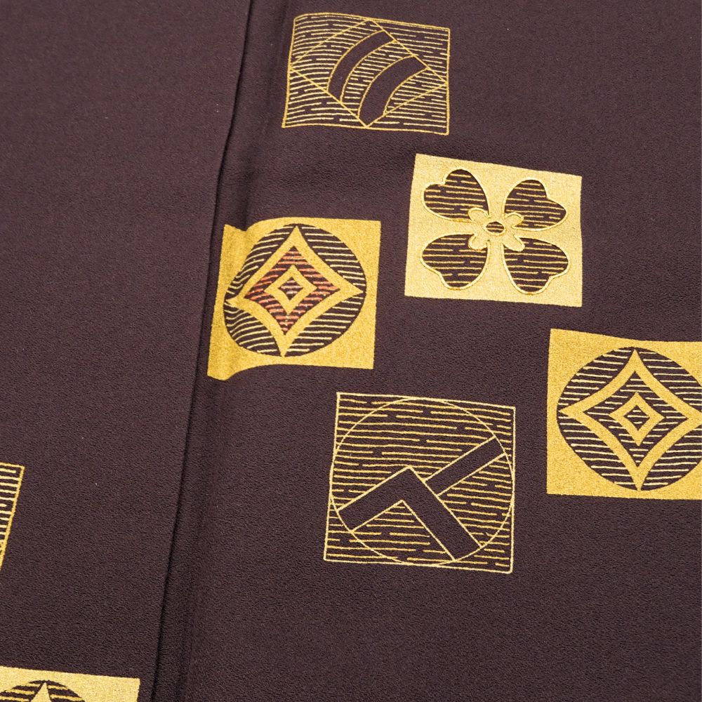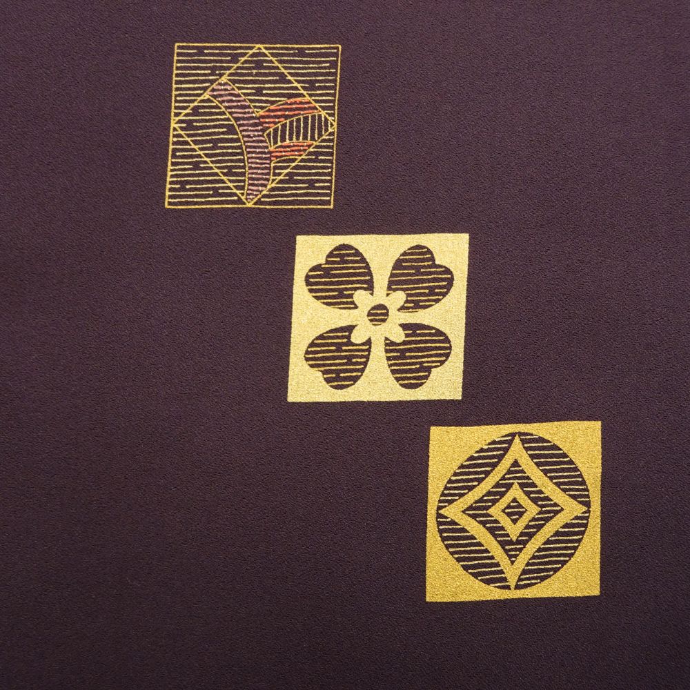 附下 袷 正絹 リユース 中古 深紫地に金彩 8050-00004B