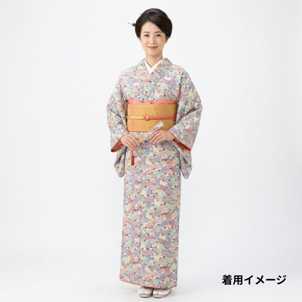 全体的に明るい多色使いのため、帯合わせもしやすく、顔映りをパッと明るく見せてくれる一枚です。