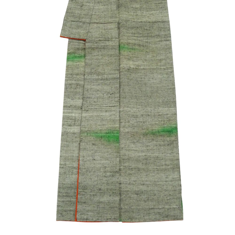 紬 正絹 リユース 中古 グレー緑 絣模様 赤色八掛 9-001-11(8050-00443)