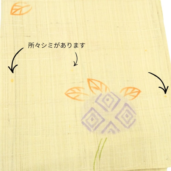 紬 正絹 リユース 中古 生成り地に愛らしい花模様 9-001-18 (8050-00450)