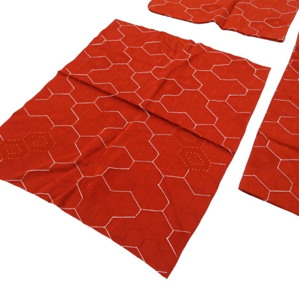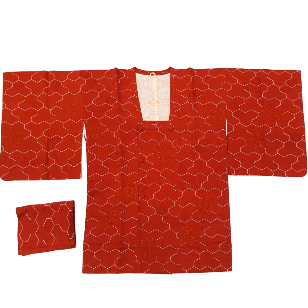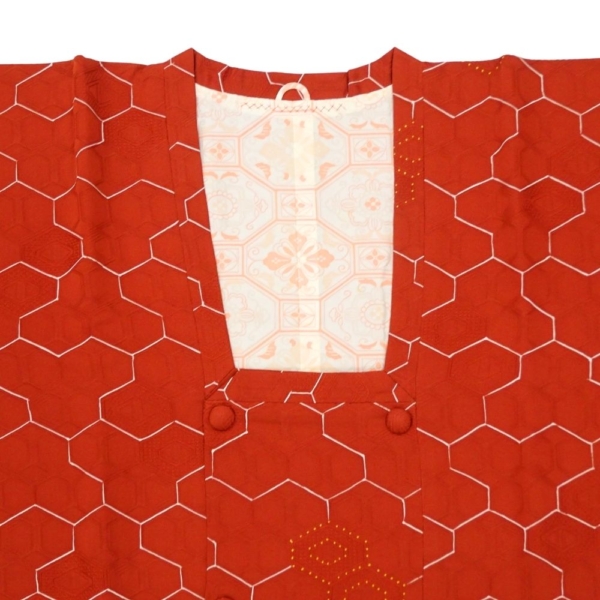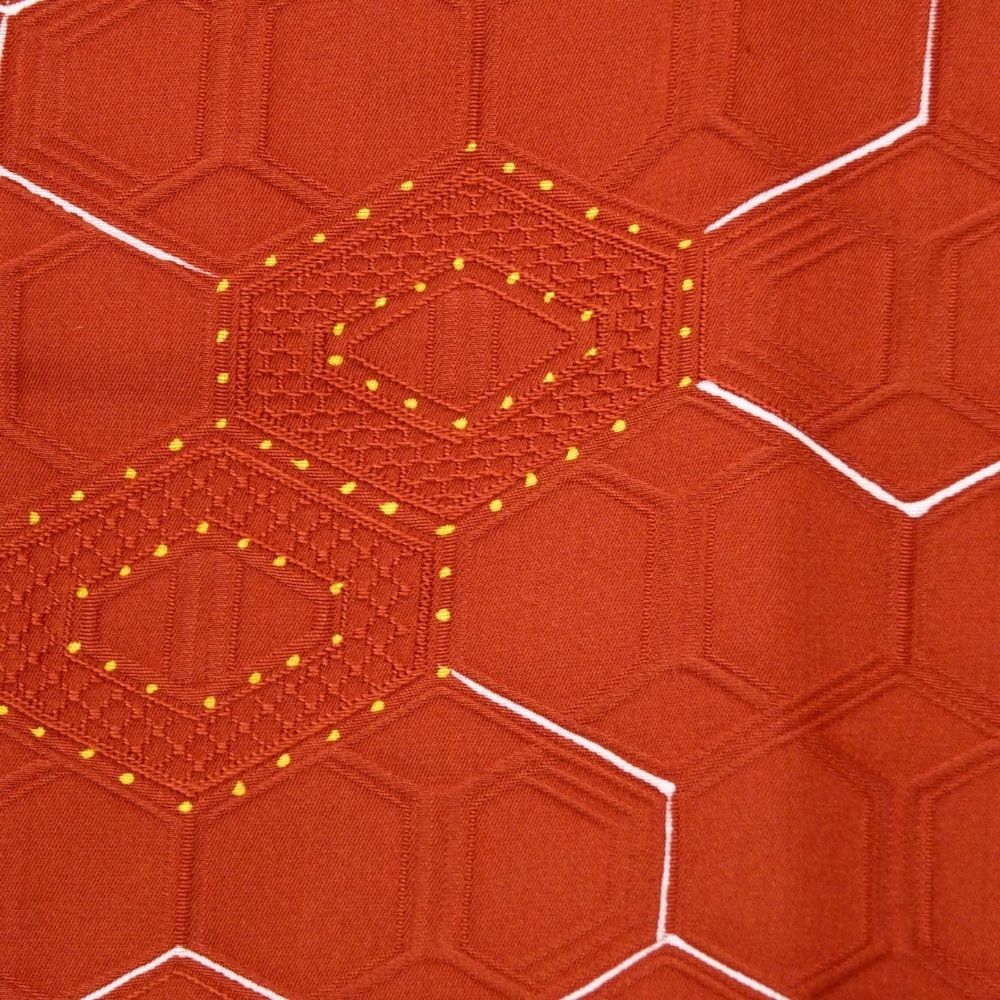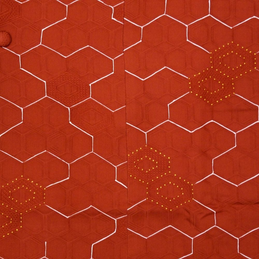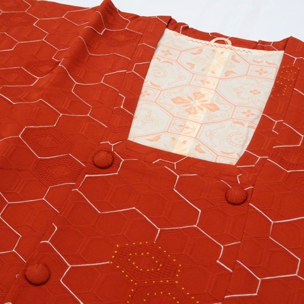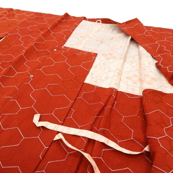 道行コート 袷 正絹 リユース 中古 赤茶系 亀甲柄 地紋入り B10-003-1(8050-00594)