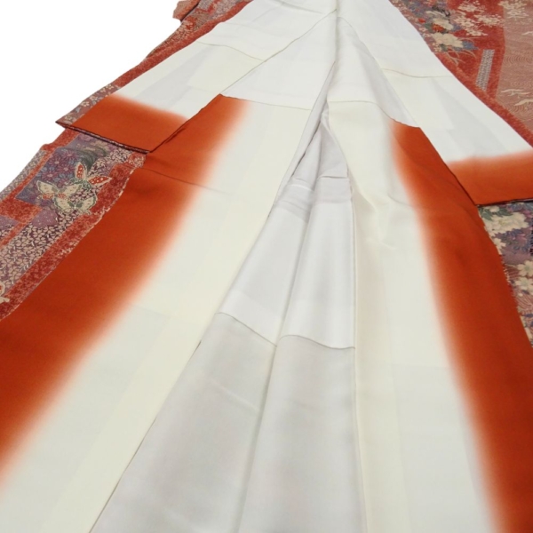広衿仕立てで、内側の裾部分には茶色のぼかしがアクセントになっています。