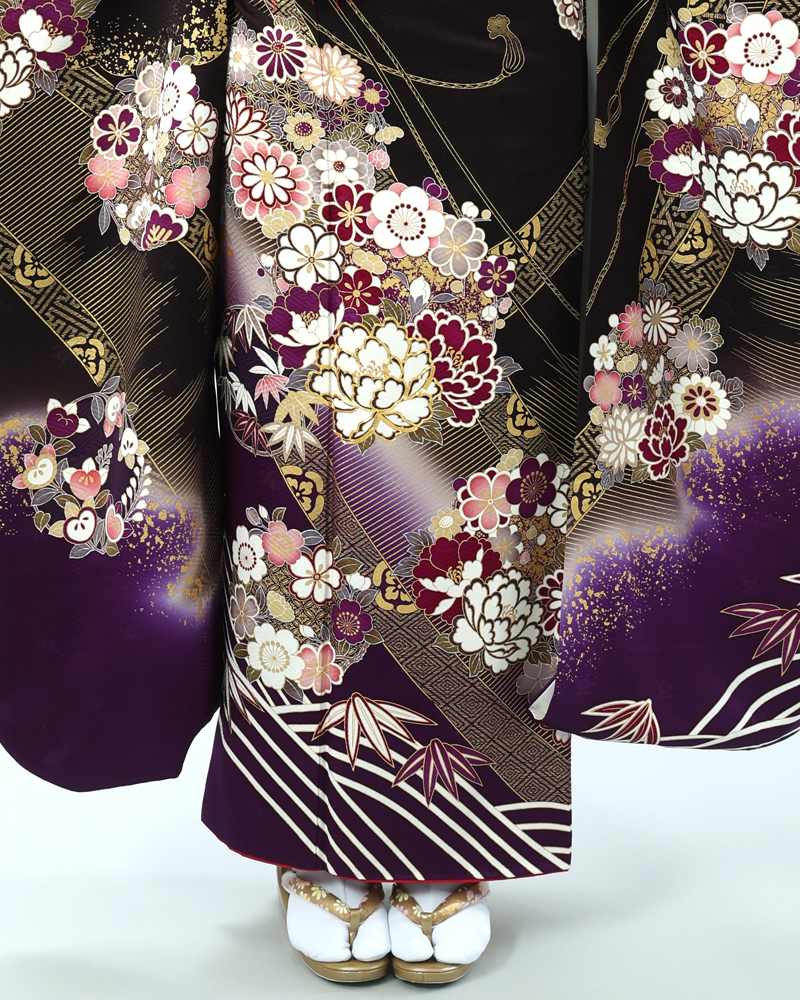 牡丹・菊と華やか古典柄に粋な紫裾ぼかし