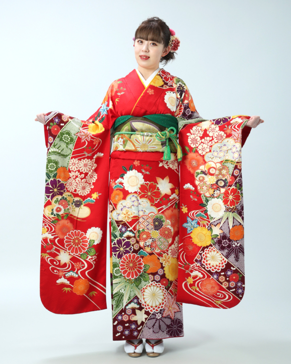 地色は、成人式の主役に最も愛される鮮やかな赤。