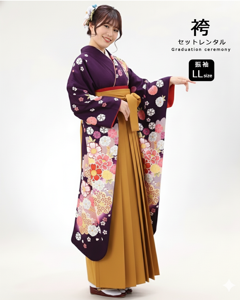 卒業式 袴 |振袖 花と毬、牡丹などの花々 LLサイズ・ カラシ袴