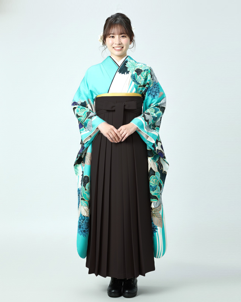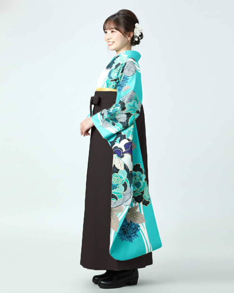 黒無地の袴をあわせて、クールで美しいコーディネートの完成です。