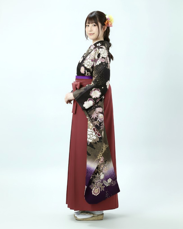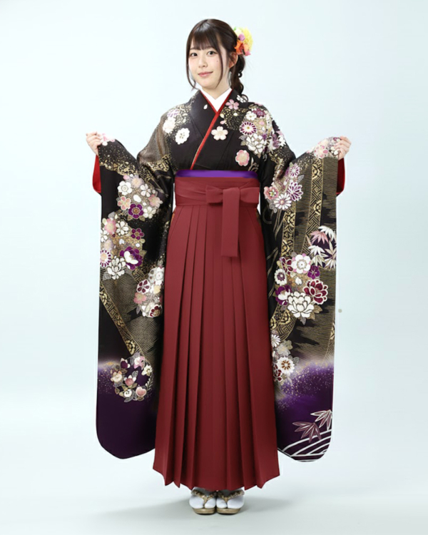 卒業式 袴 |振袖 牡丹・菊と華やか古典柄 Lサイズ・えんじ袴