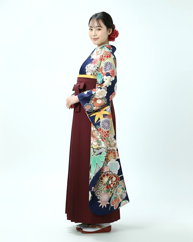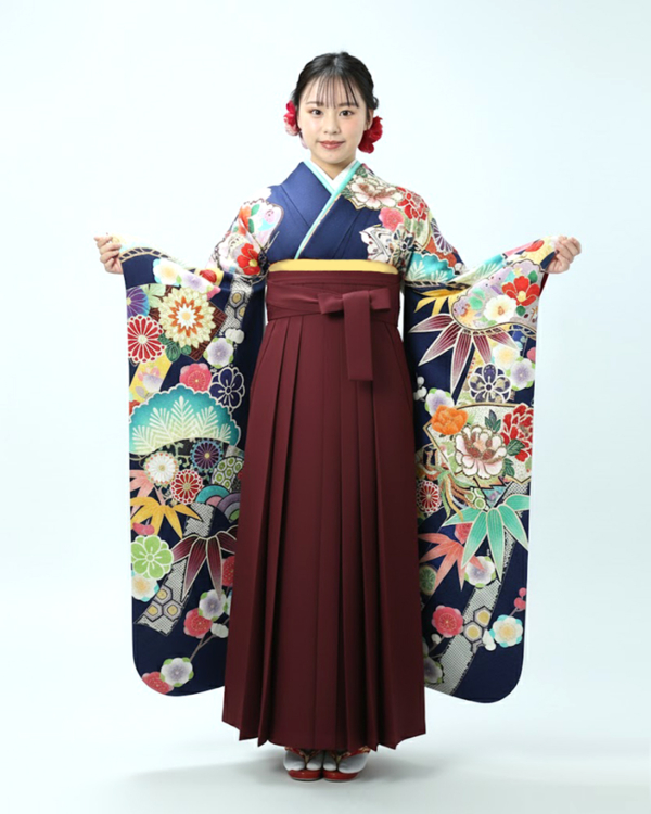 卒業式 袴 |振袖 扇面に咲き誇る四季の花々 Lサイズ・えんじ袴