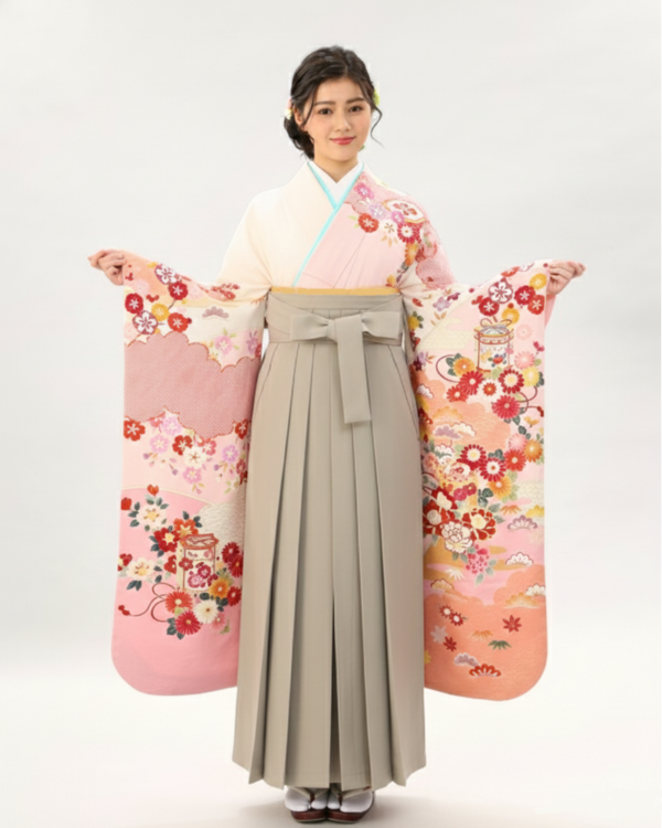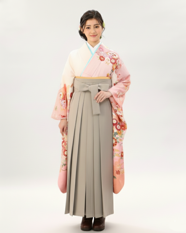 袴に中間色のベージュを合わせることで、全体がぐっと今っぽく、都会的な雰囲気になります。