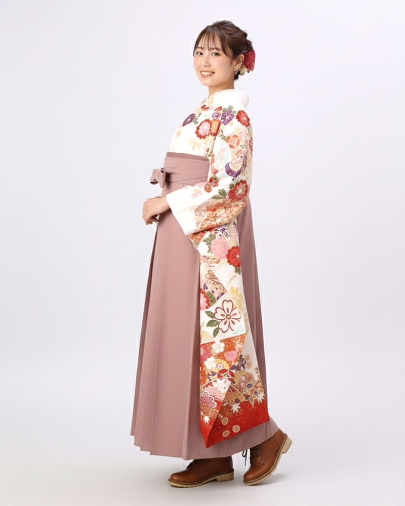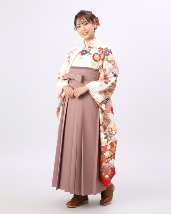 袴には、落ち着いたトーンのくすみピンクを採用。