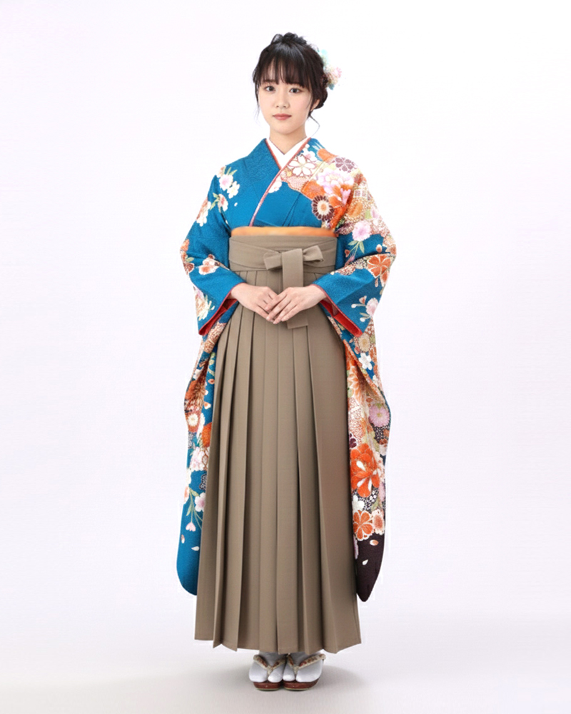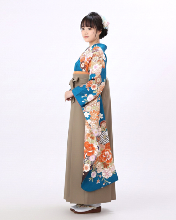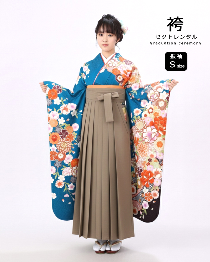 卒業式 袴 |振袖 熨斗目に牡丹と貝桶 Sサイズ・ ベージュ袴