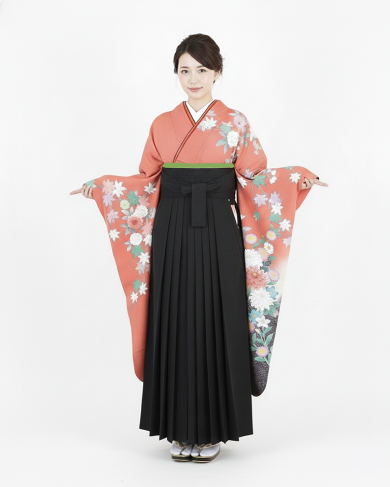 黒の袴を合わせれば、モダンで知的な「はいからさん」スタイルで、主役級の存在感を放ちます。