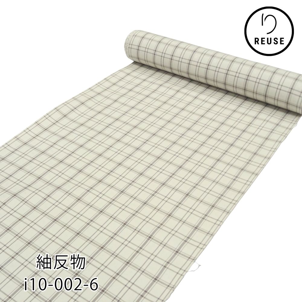 紬反物 正絹 リユース 白地 格子柄 チェック i10-002-6(8050-00833) 未仕立て 街着 カジュアル