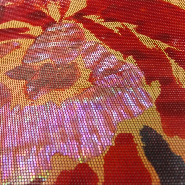 光の当たる角度によって、紫、ピンク、グリーンと神秘的に色を変え、非常に華やかで存在感があります。