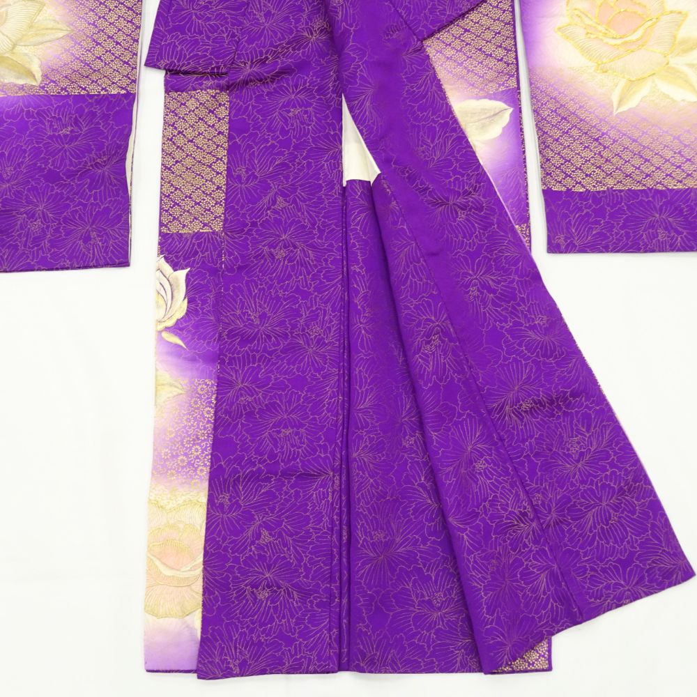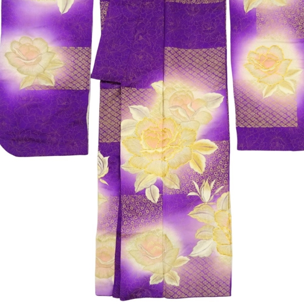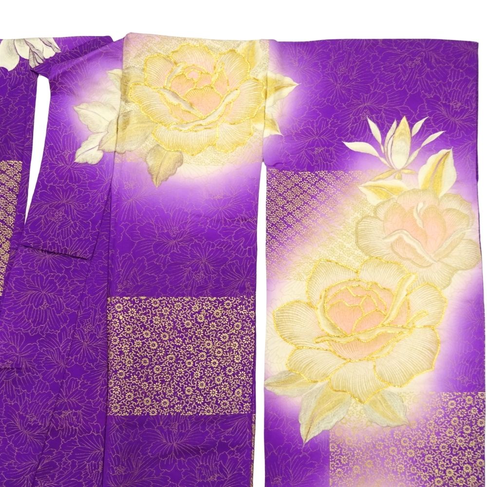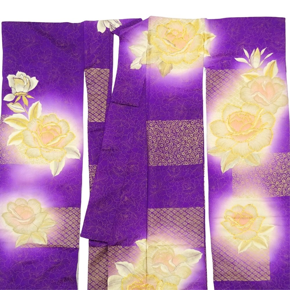 振袖 正絹 リユース 中古 紫 薔薇 バラ 金彩 K10-002-5 (8050-00560) 成人式 結婚式 卒業式 パーティー