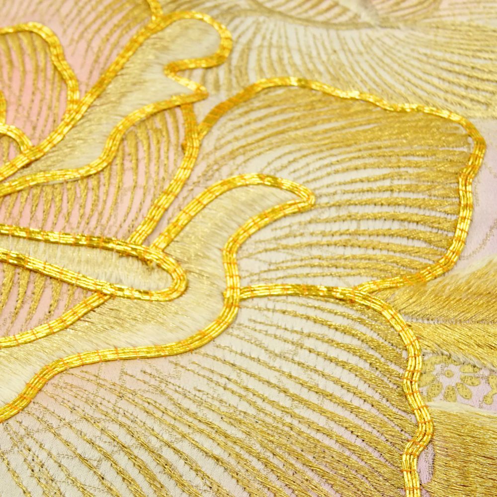 背景には市松状に配された小花模様が織り込まれており、単色ではない深みと高級感があります。