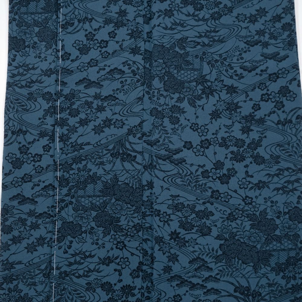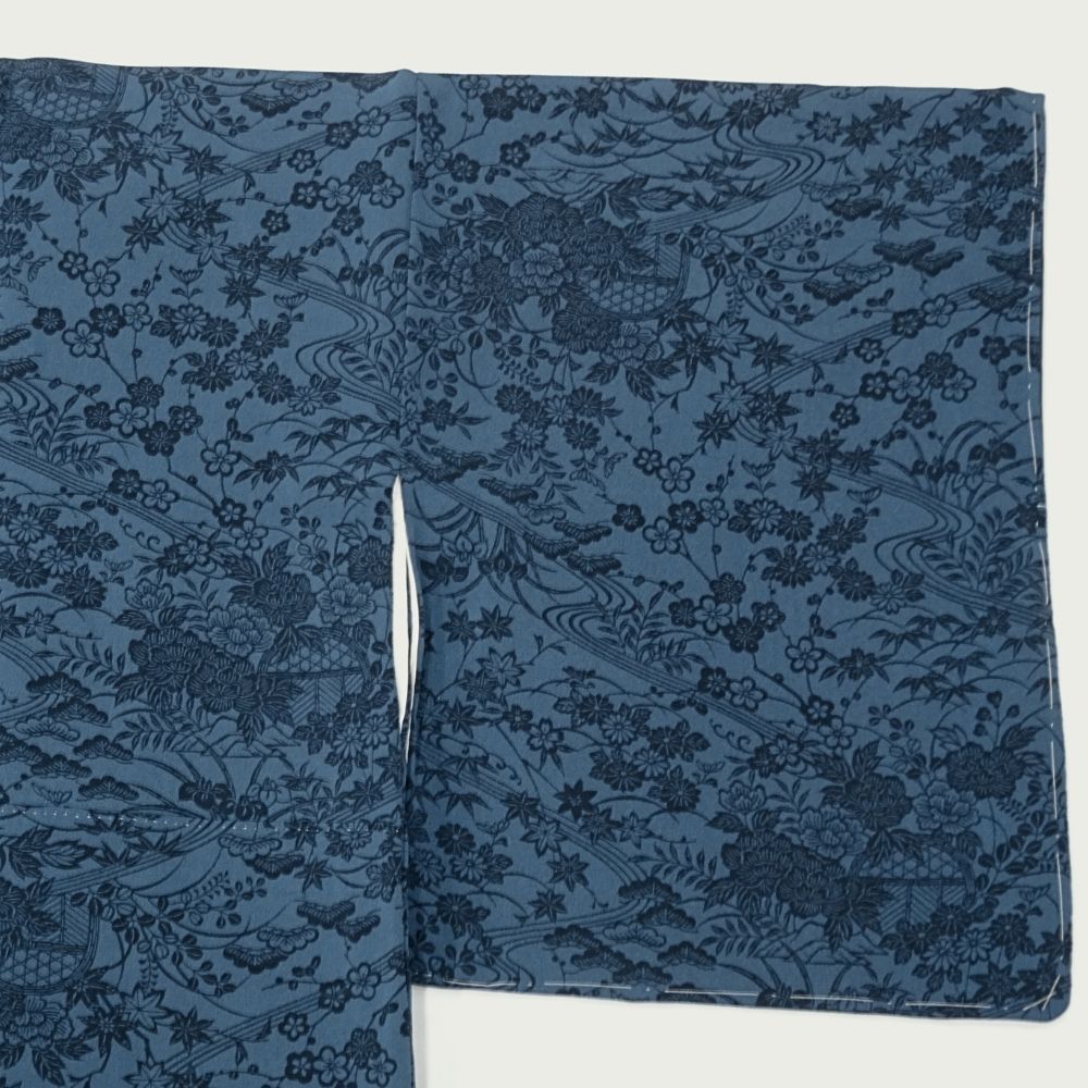 藍型染小紋 袷 正絹 リユース 中古 趣ある流水・花文様 逸品 K10-005-14(8050-00623)