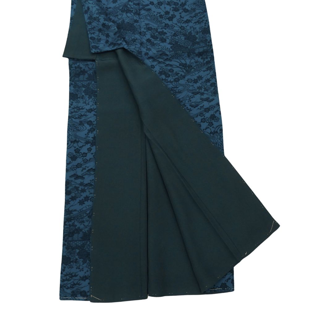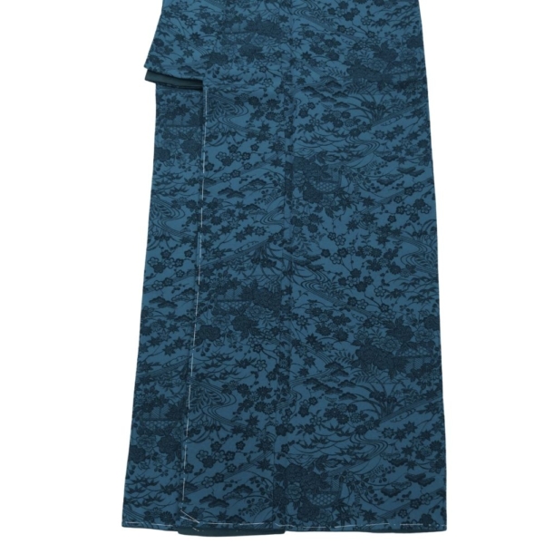 型染め特有の、くっきりとしながらも深みのある古典柄が全体に配された総柄です。